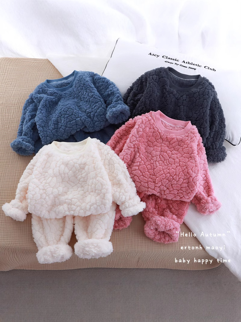 Flannel Suit Children's Baby Girl Two-Piece Set New Furry Jacquard Loose Round Neck Home Clothes