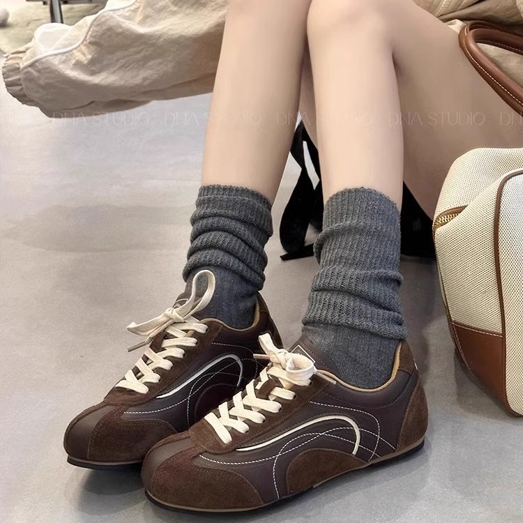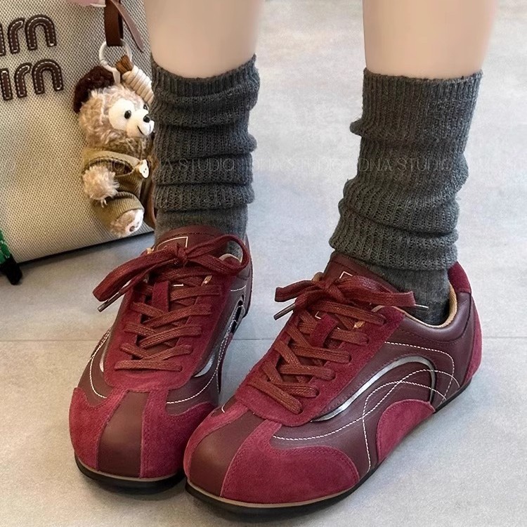Flat Color Matching Forrest Gump Shoes for Women 2024 Autum New Soft Leather Retro Moral Training Shoes Casual Niche Sports Shoes Sneakers