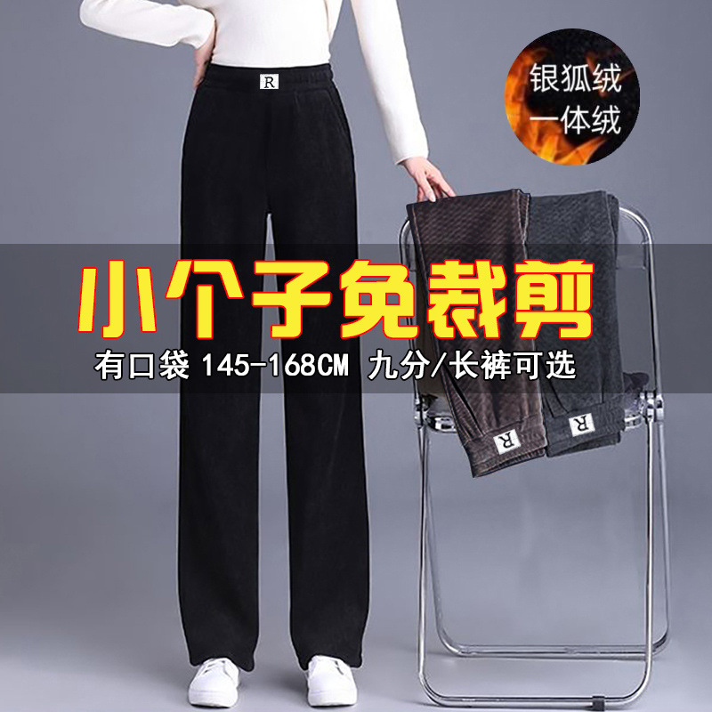 fleece-lined 150cm Small Chenille Narrow Wide Leg Pants Women's Autumn and Winter High Waist Short Casual Straight Leg Pants for Women