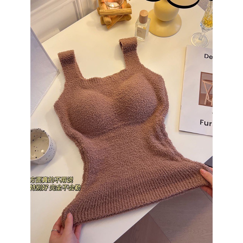 fleece-lined Camisole with Chest Pad Lambskin Plush Warm Base Shirt Autumn and Winter Wear-Free Bra One-Piece Interior