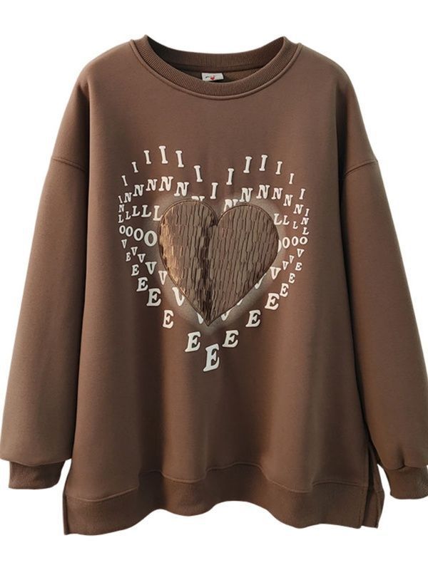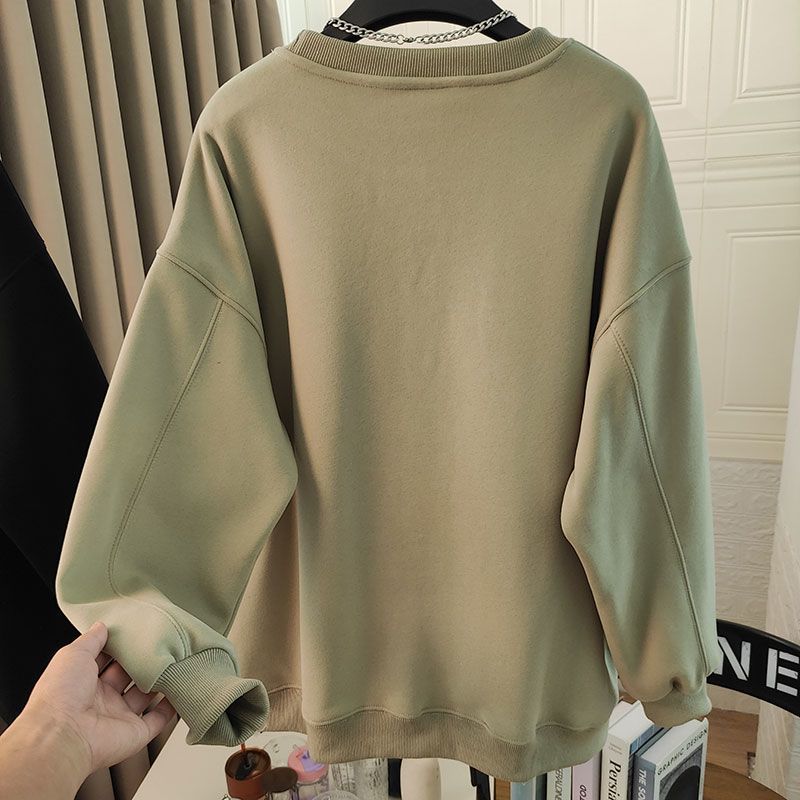 Fleece-lined thickened plus size chubby girl round neck sweater for women 2023 autumn and winter New patch belly covering long sleeve top