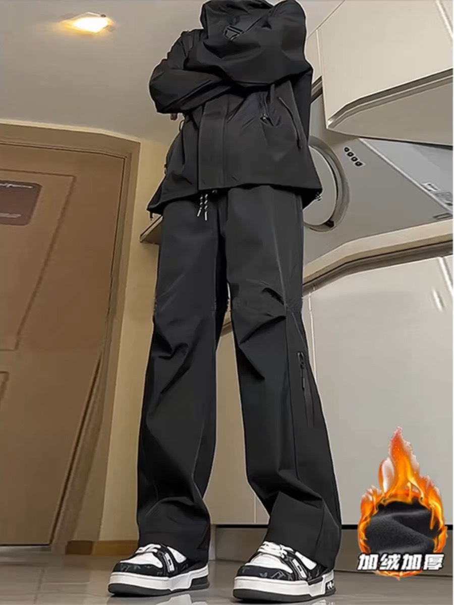 Fleece-Lined Waterproof Outdoor Pants American Style 2025 Autumn and Winter Unisex Outdoor Hiking Skiing Cargo Pants Black Long Pants Men