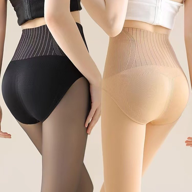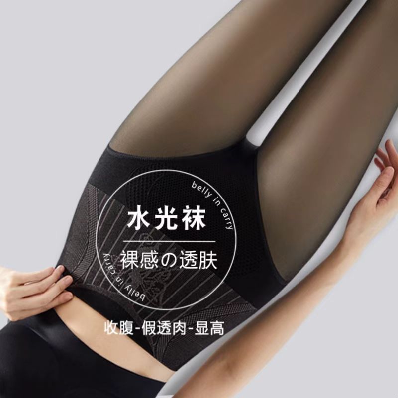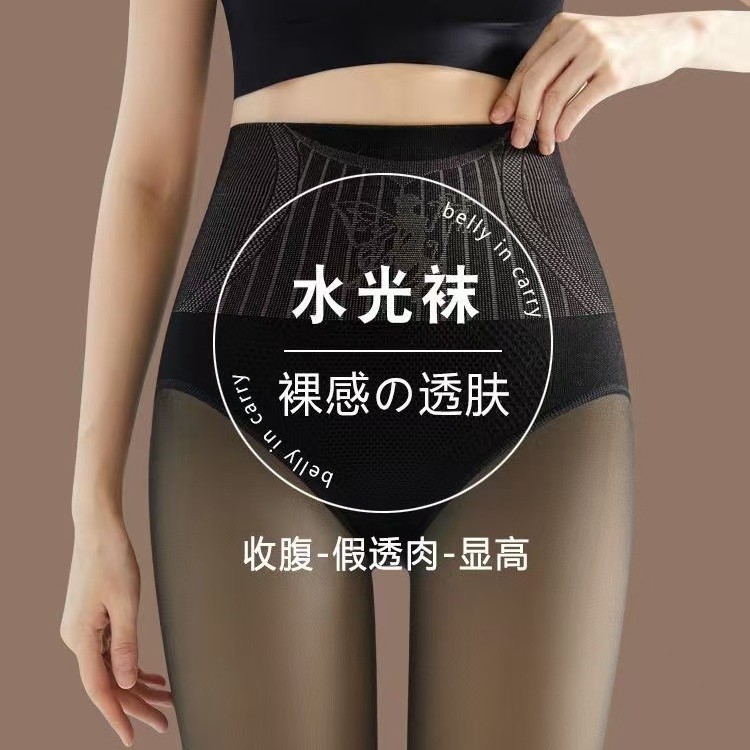 Flower Fairy Black Water Light Skin-transparent Socks Women's Autumn and Winter High Waist Belly-closed Pantyhose Anti-snag Silk Warm fleece-lined Leggings