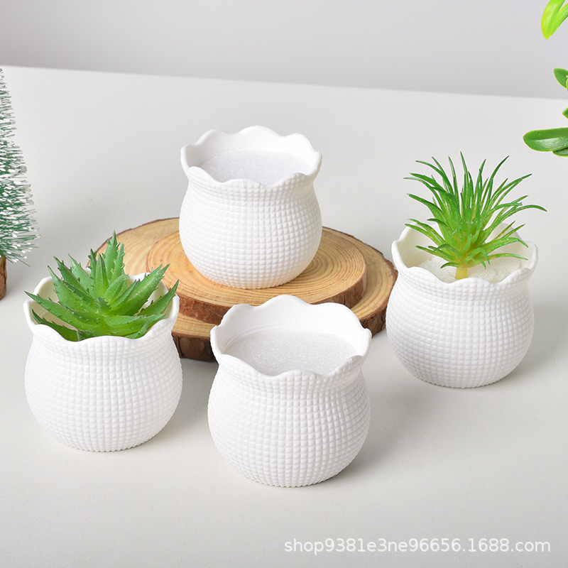 Flower Pot Simulation Ornaments Mini Car Flower Pot Plastic Bag Flocking Foam Handmade Flower Pot Drop-Resistant Fleshy White Pot