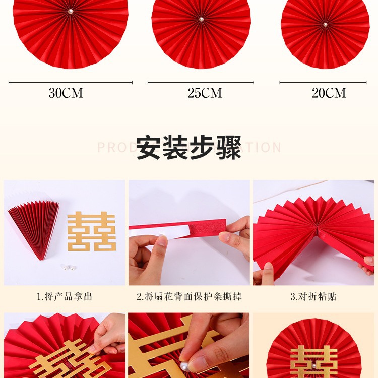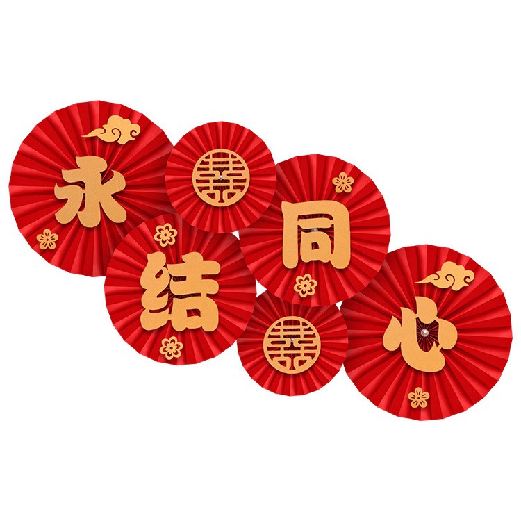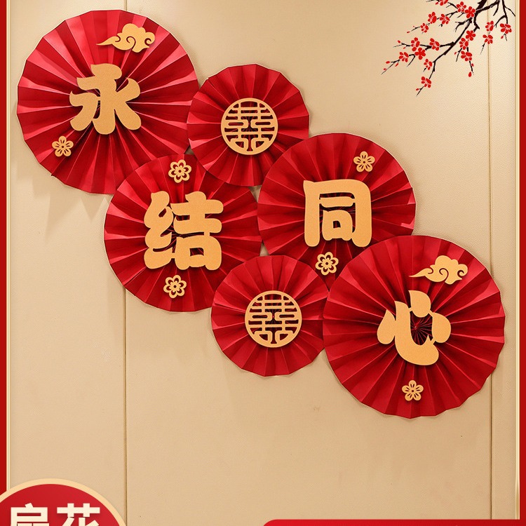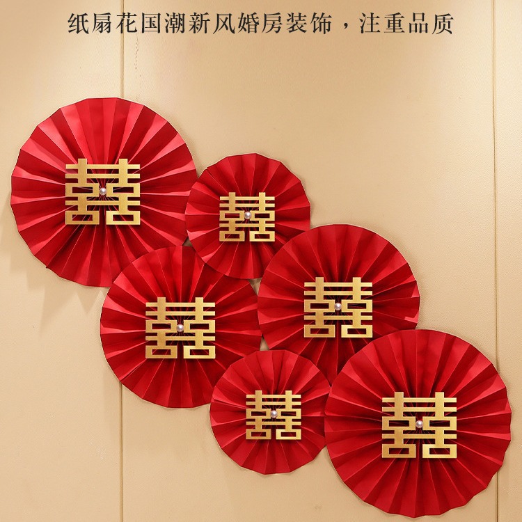 Flower Wedding Happy Character New House Decoration Wedding Room Decorative Paper Fan Flower Man's Woman's House Creative Simple Atmospheric Bedroom