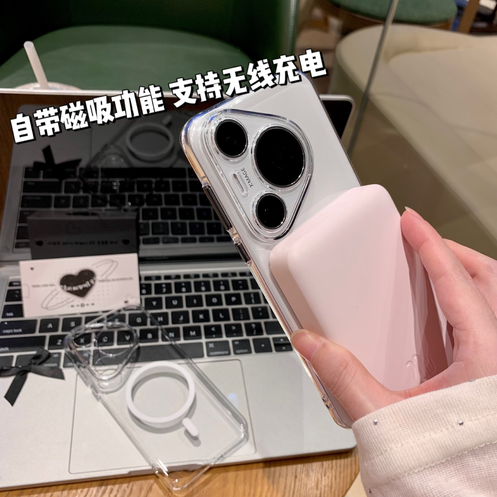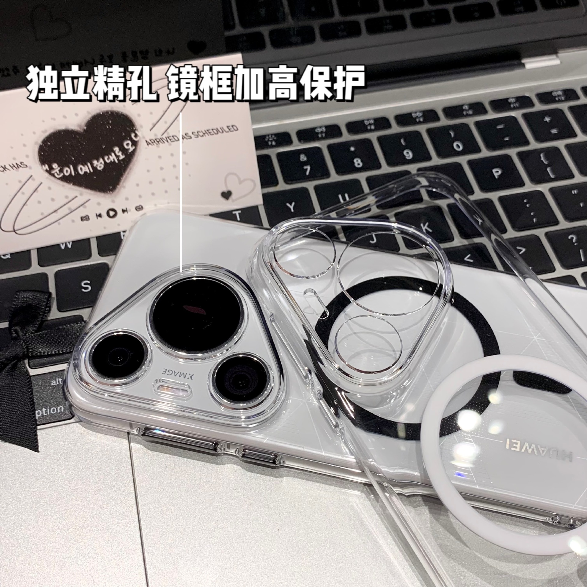 For Huawei P70Ultra Transparent Magnetic Phone Case Mate60pro All-Covering Drop-Resistant PC Simple Protective Case