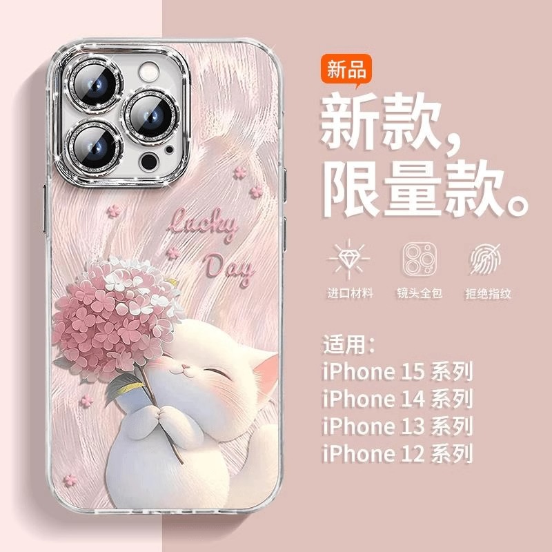 Suitable for iPhone 17 Apple 16 Mobile Phone Case 15/14/13/12 Pro Max Feather Yarn Plus Cat 124