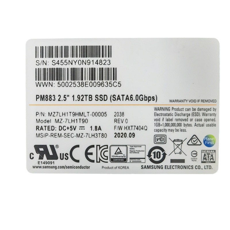 For Samsung PM 883 480G 960G 1.92T SATA3 Hard Disk SSD Enterprise Solid State Disk