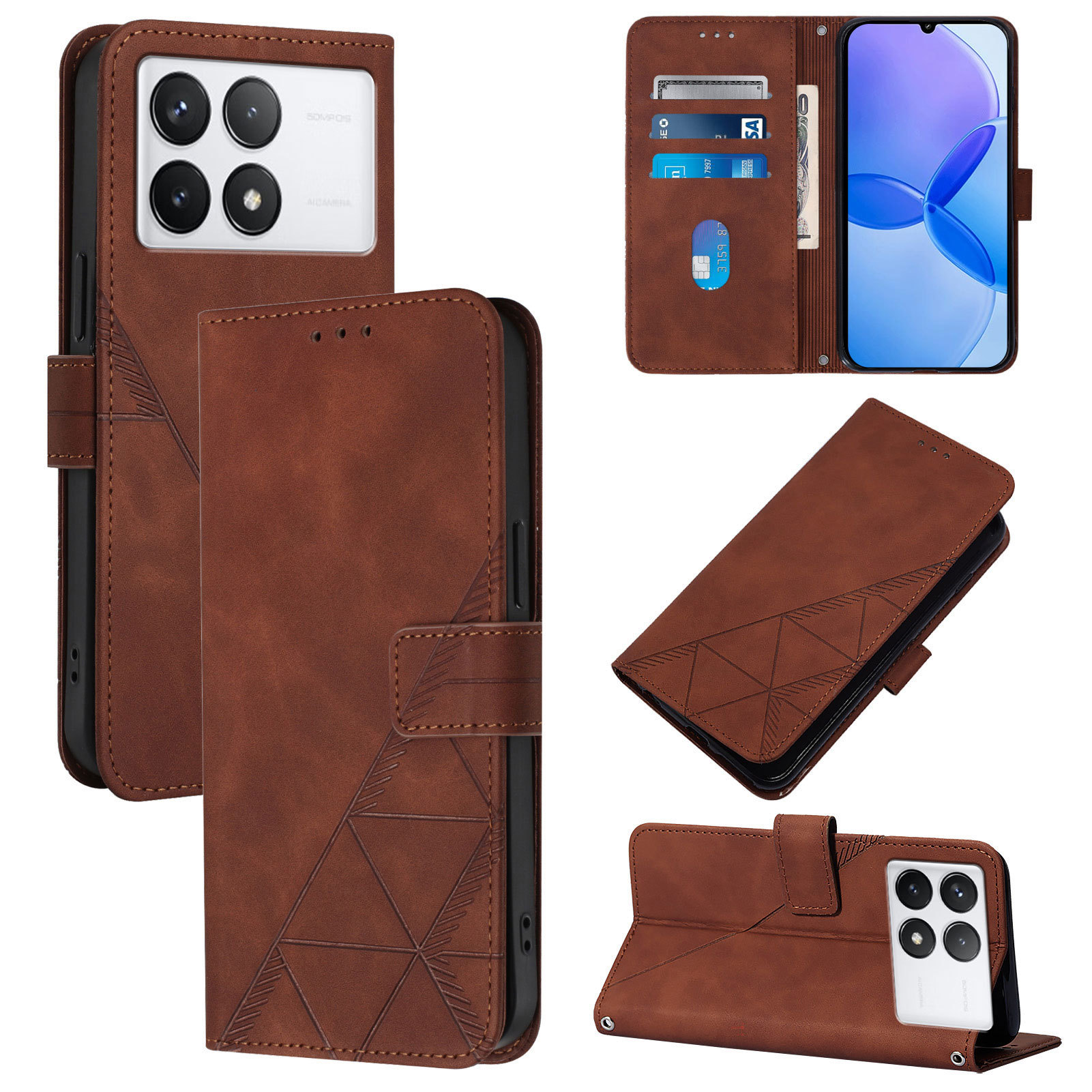 For Xiaomi POCO X7pro Embossed Crossbody Lanyard Leather Case POCO X6pro Multi Card Lanyard Flip Cover Leather Case