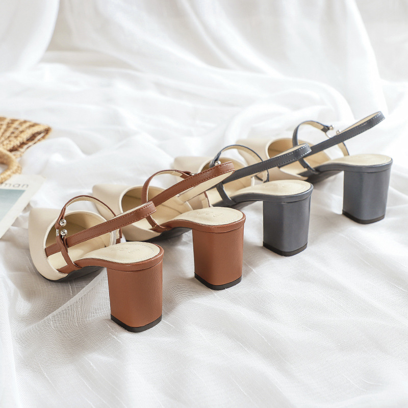 Foreign Trade Baotou Sandals Women's Summer New Pointed Cyber Popular High Heels Fashionable Rear Empty Thick Heel Fashionable Skirt Shoes