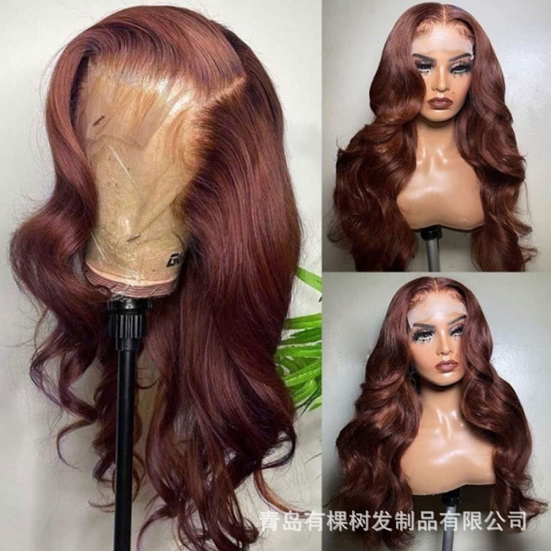 Foreign trade Europe and the United States chemical fiber front lace wig full head cover Brown big wave fashion fluffy spot a generation of hair