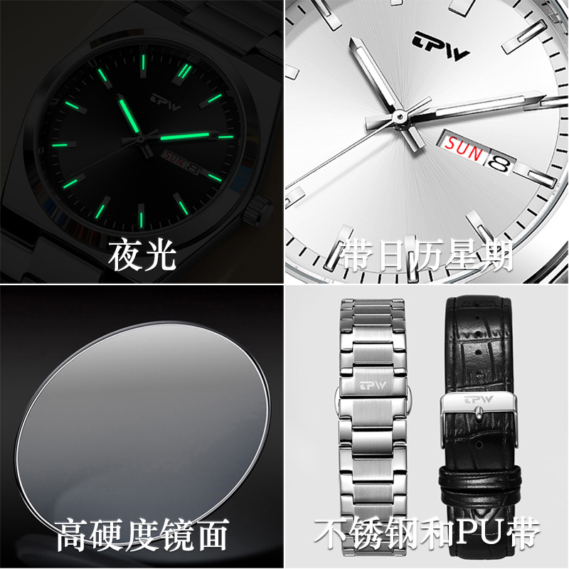 Foreign trade explosions stainless steel business waterproof luminous men's quartz watch simple double calendar watch wholesale