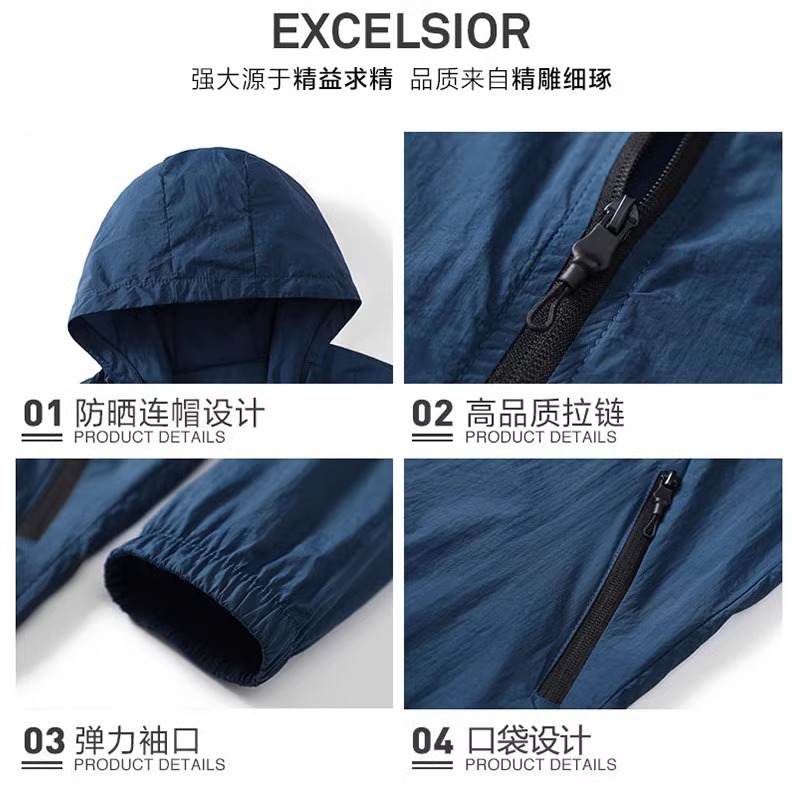 Foreign Trade Ice Silk Quick-drying Sun Protection Clothing Summer Men's Hooded Thin Jacket Outdoor Breathable Sun Protection Clothing for Men and Women