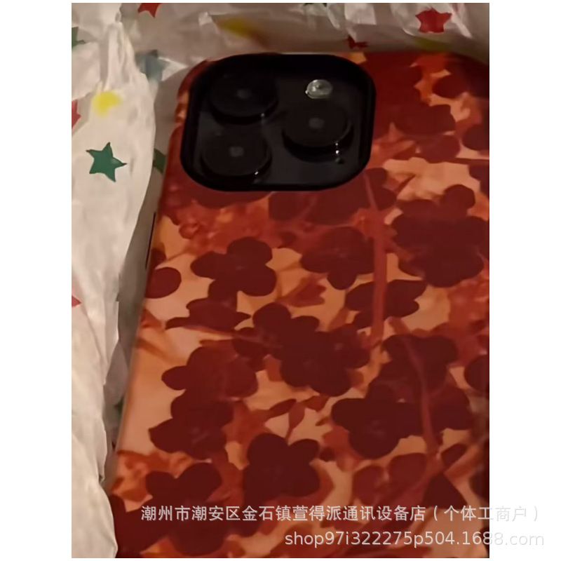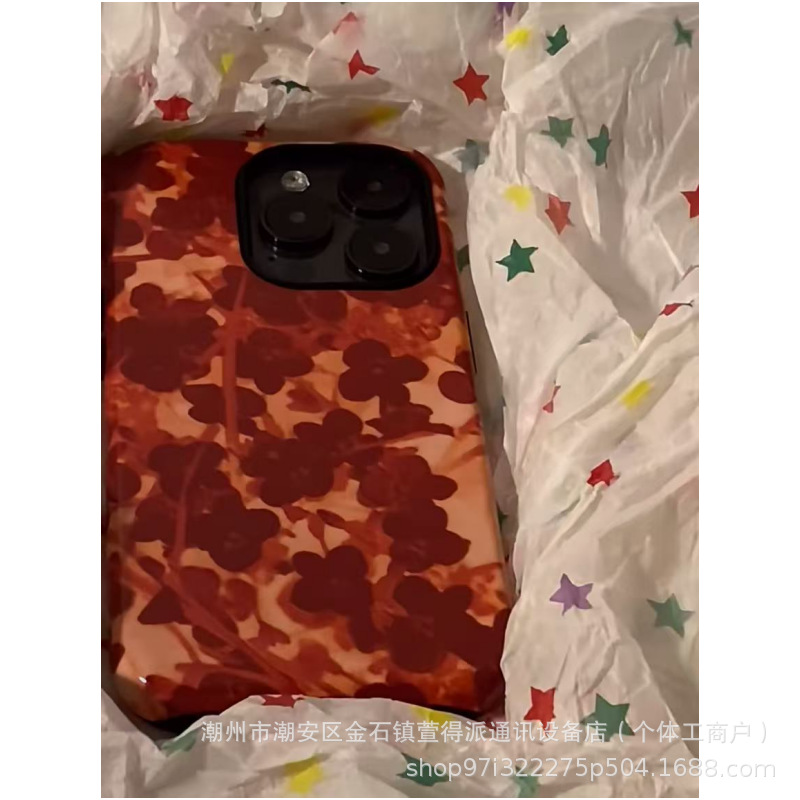 Foundation Full-Screen Oil Painting Red Flower Suitable for Iphone16Promax Apple Phone Case 15Plus/14 Anti-Fall Trend