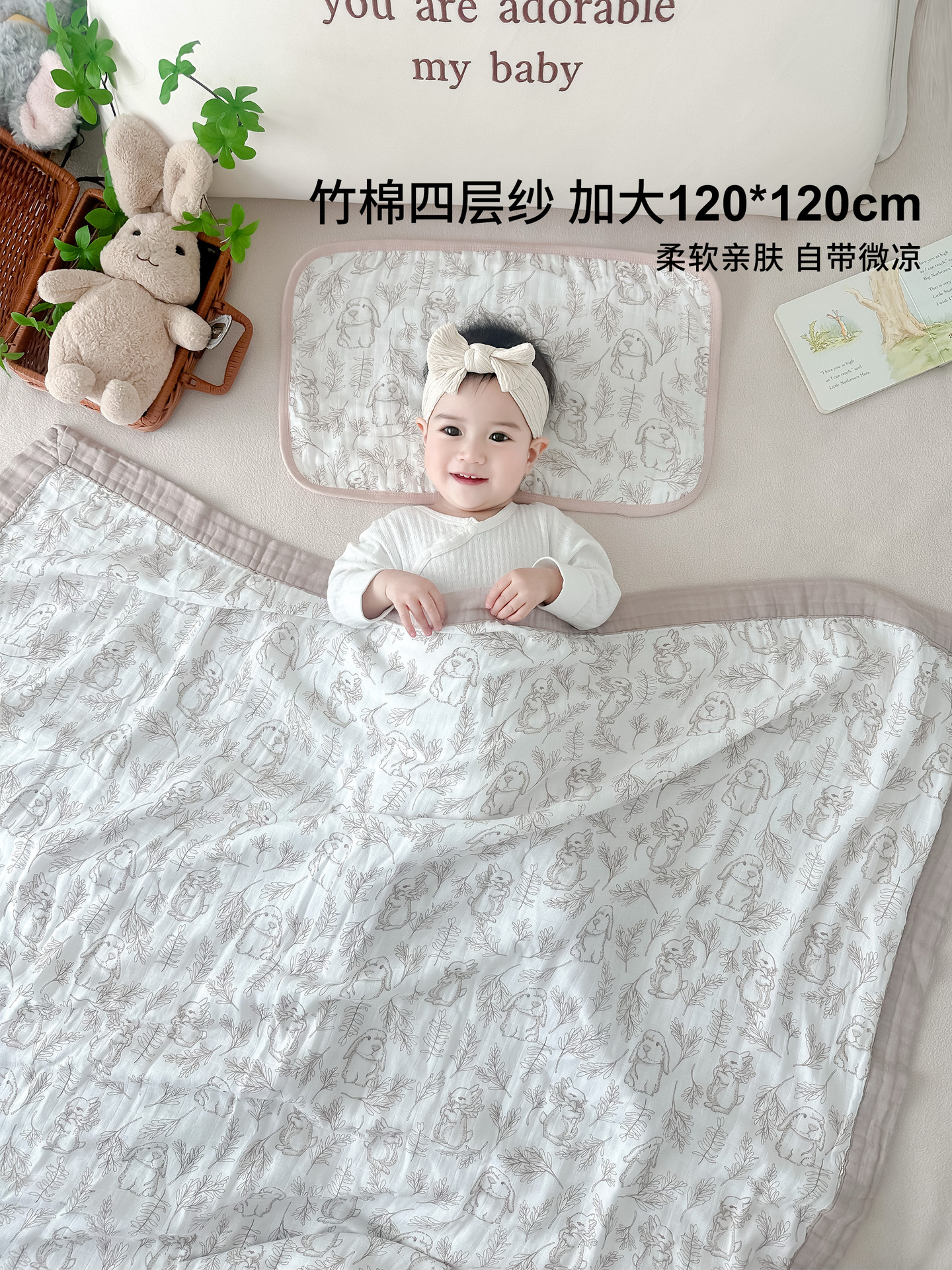 Four-layer bamboo and cotton quilt Class A newborn bag single bag baby newborn baby bath towel cover quilt cover blanket