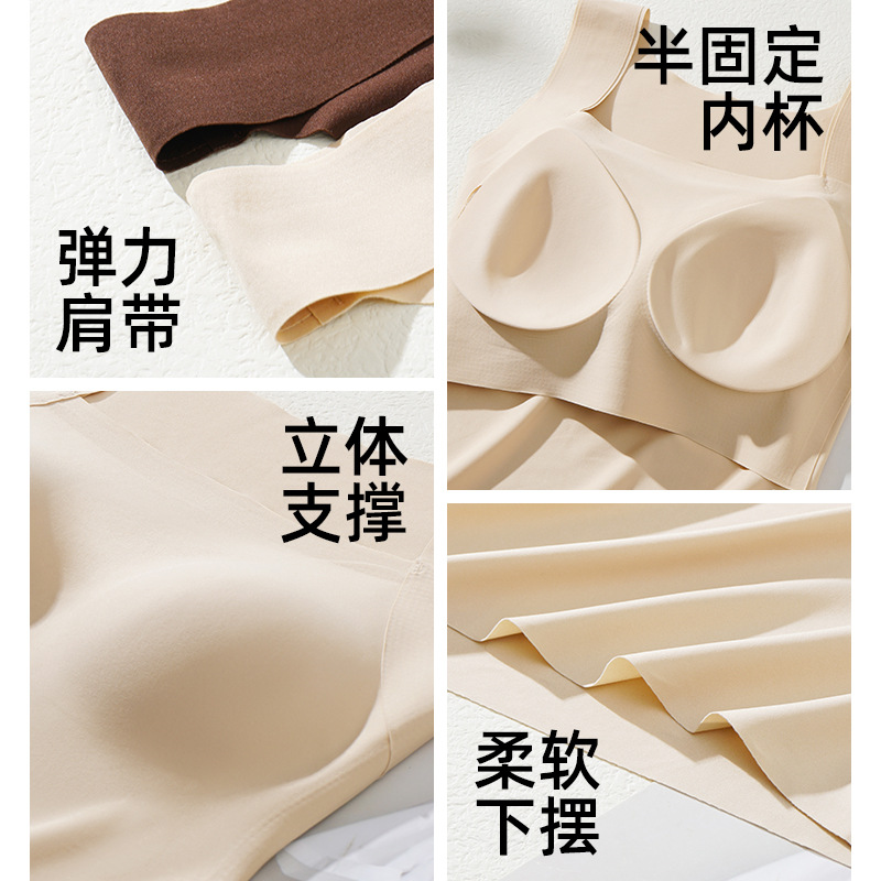 Four Seasons Wear plus size Traceless Base Vest for Women Hyaluronic Acid Moisturizing Muscle Base Vest with Chest Pad Outer Wear Inner Wear