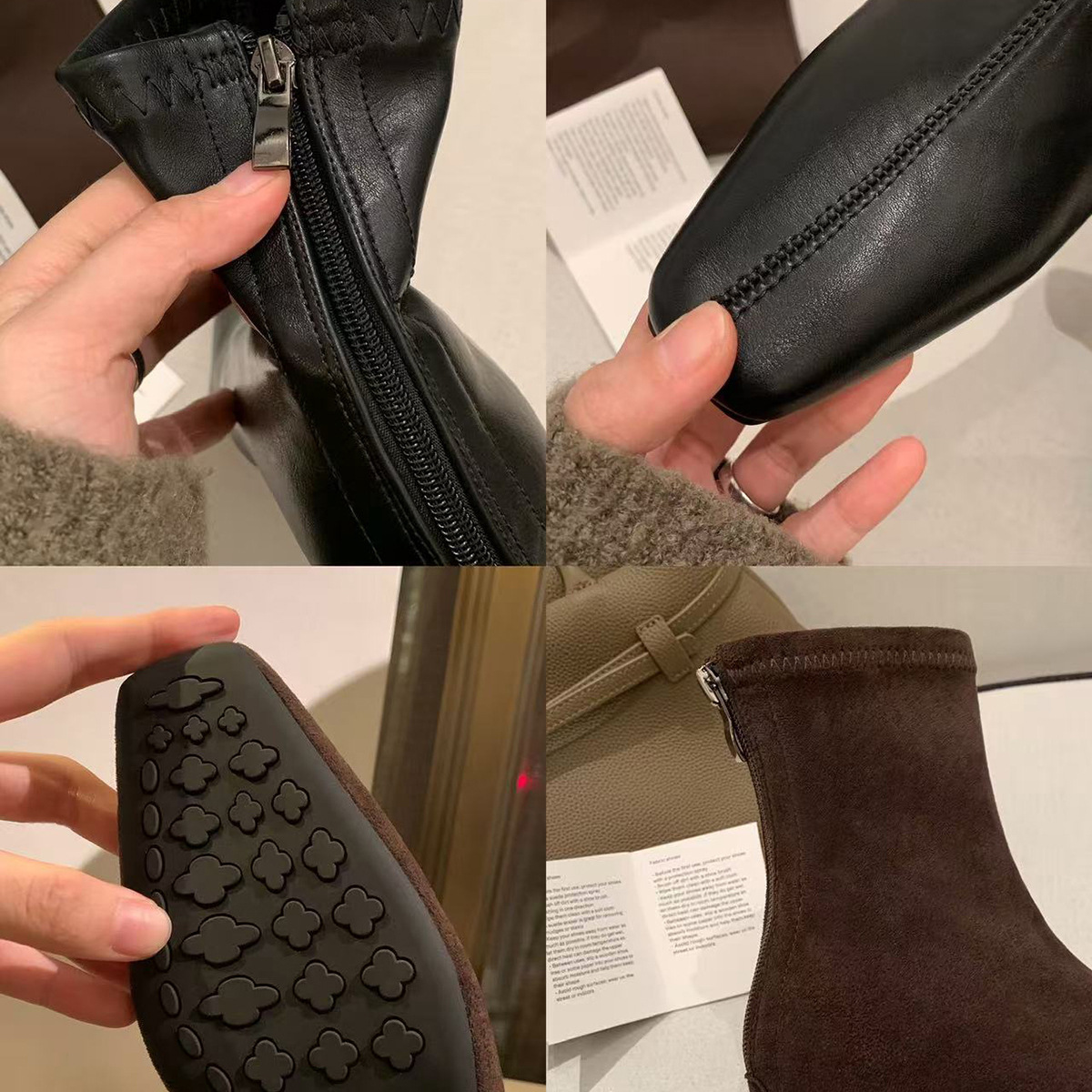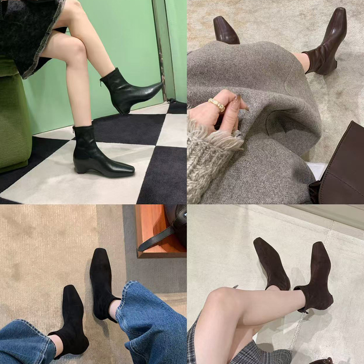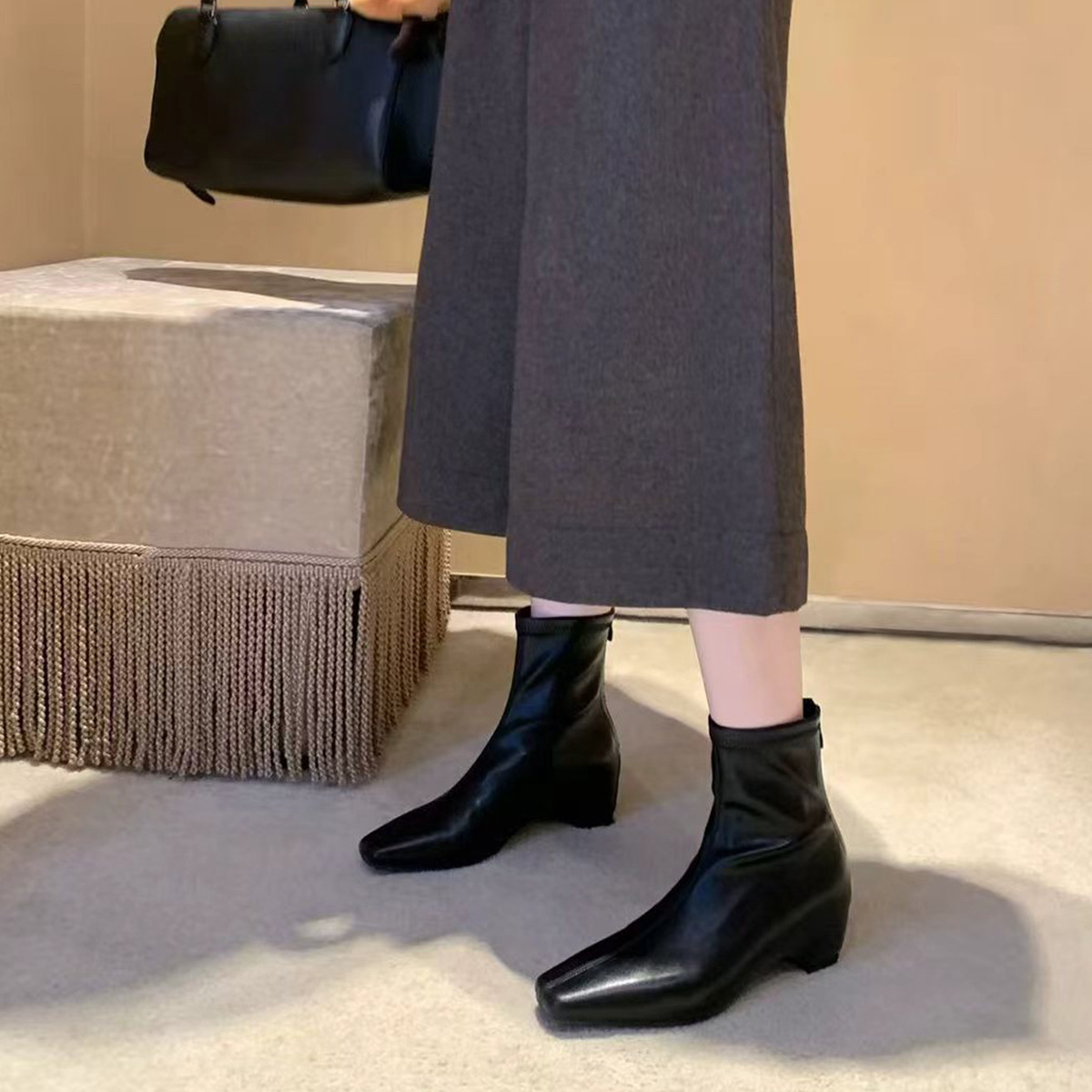 French 2025 Autumn and Winter New Women's Boots Increase Height by 6cm, Classic Small Square Toe, Versatile Back Zipper, Slim Short Boots for Women