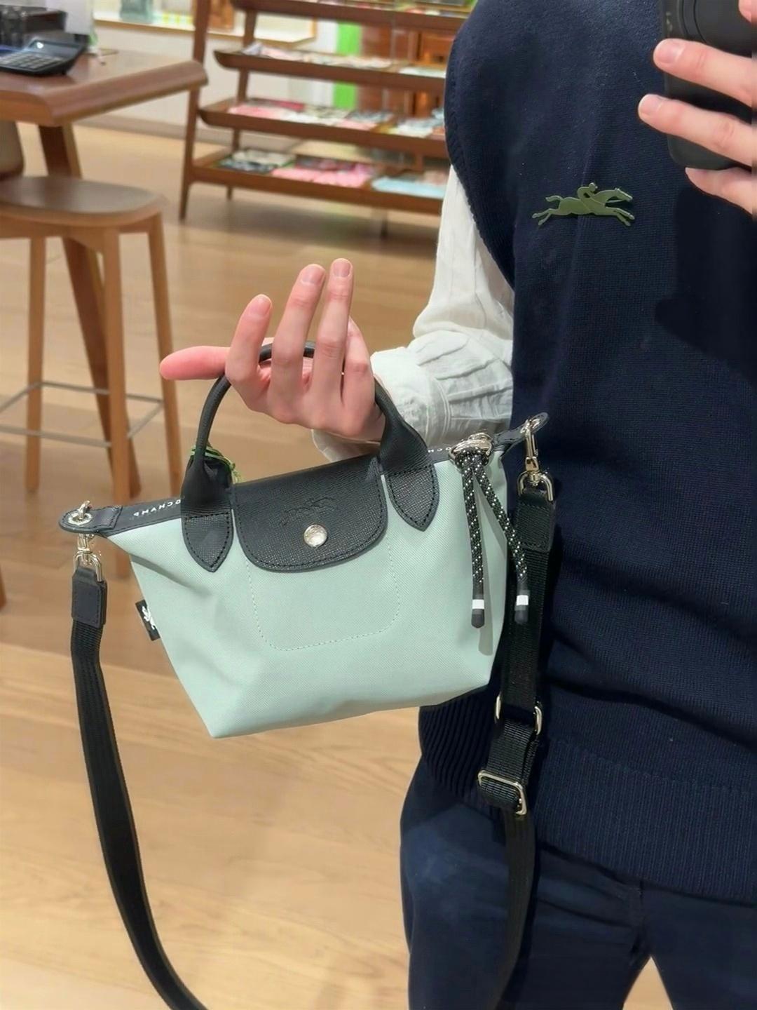 French Longjia Ener Dumpling Bag High Quality Nylon Canvas Hand-Held Crossbody Bag Cowhide Mini Dumpling Bag