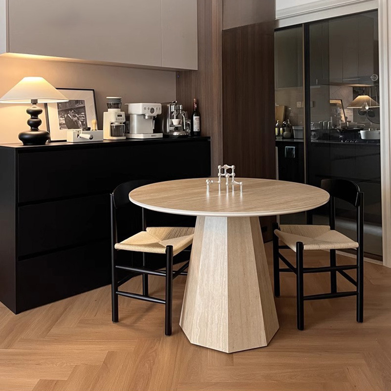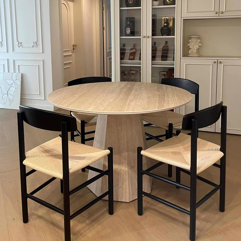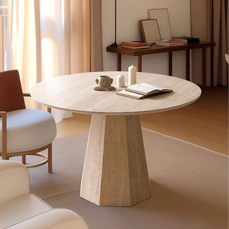 French Roman Travertine Slate Dining Table Modern Simple Mid-Century Style Rectangular Dining Table Designer Home Small Apartment