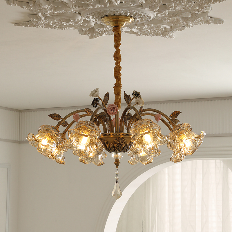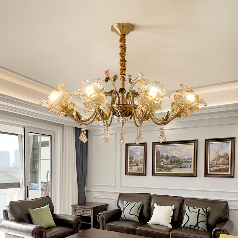 French-Style All-Copper Crystal Chandelier, Living Room Main Light, American-Style Light Luxury Dining Room Light, Bedroom Light, Retro-Style Study Light
