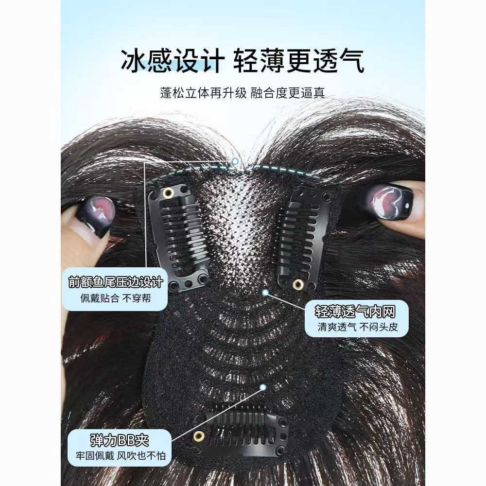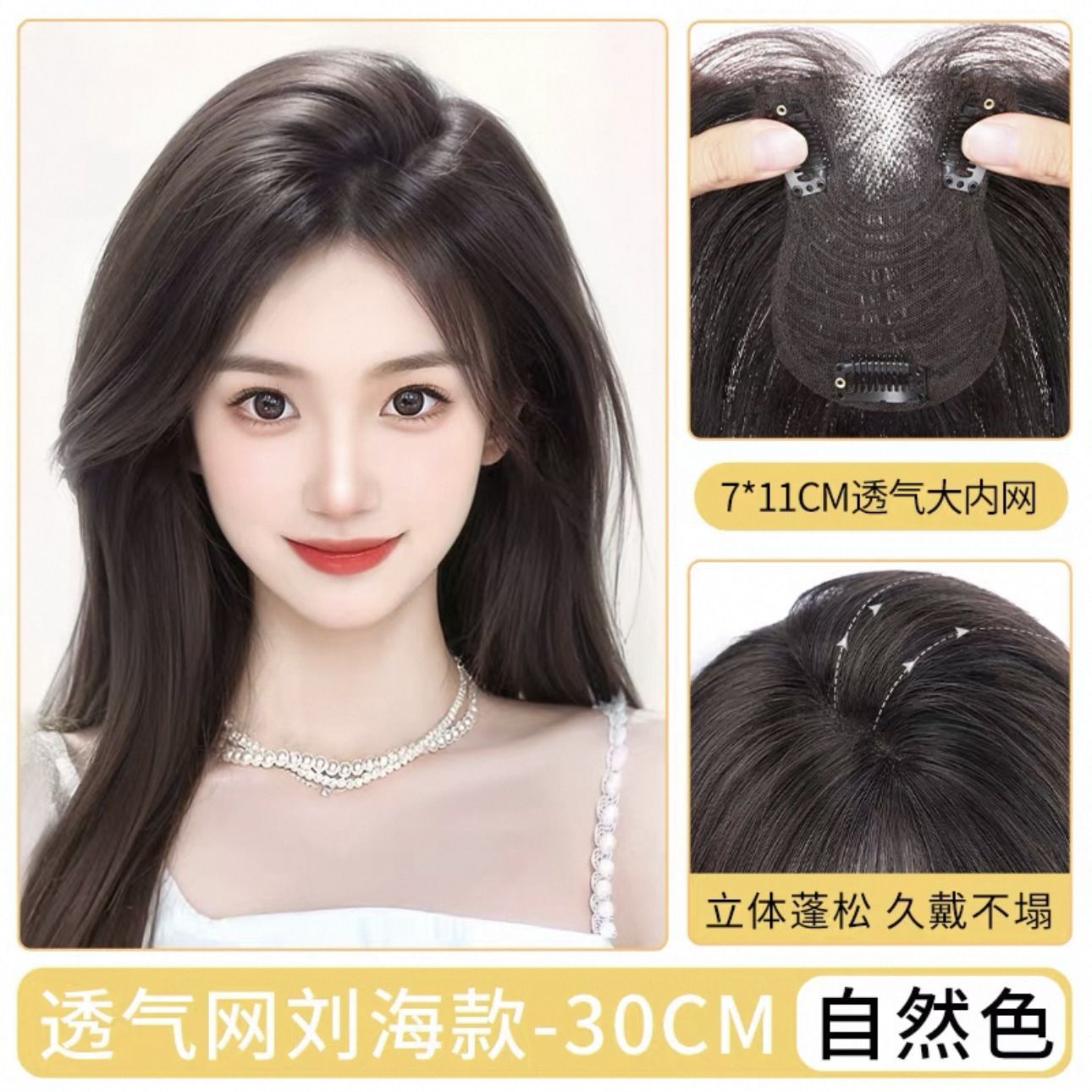 French-Style Bangs Wig for Women, Top Hairpiece, Hand-Woven Loose Synthetic Hair, Lightweight to Cover Gray Hair, Honey Pot Net Hairpiece