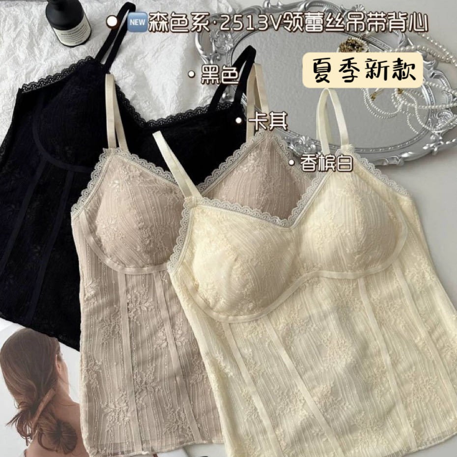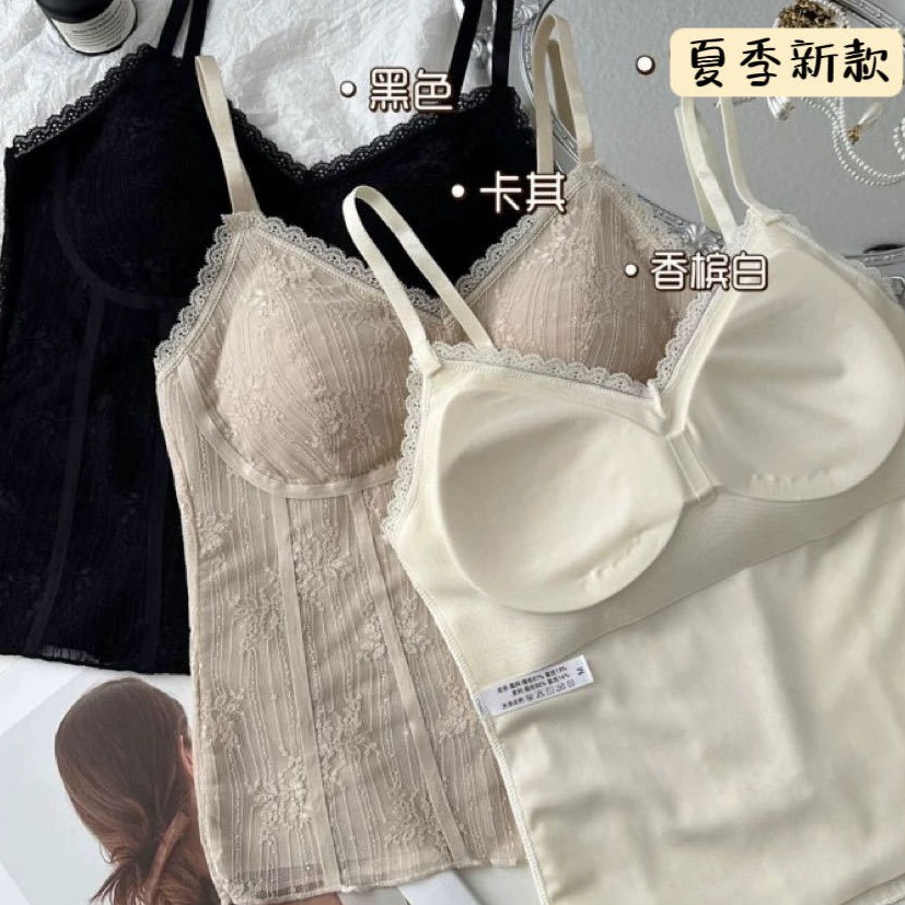 French-Style Sexy Lace Beautiful Back Camisole for Women with Built-In Bra Pads, White Sleeveless Base Top for Women to Wear Outside