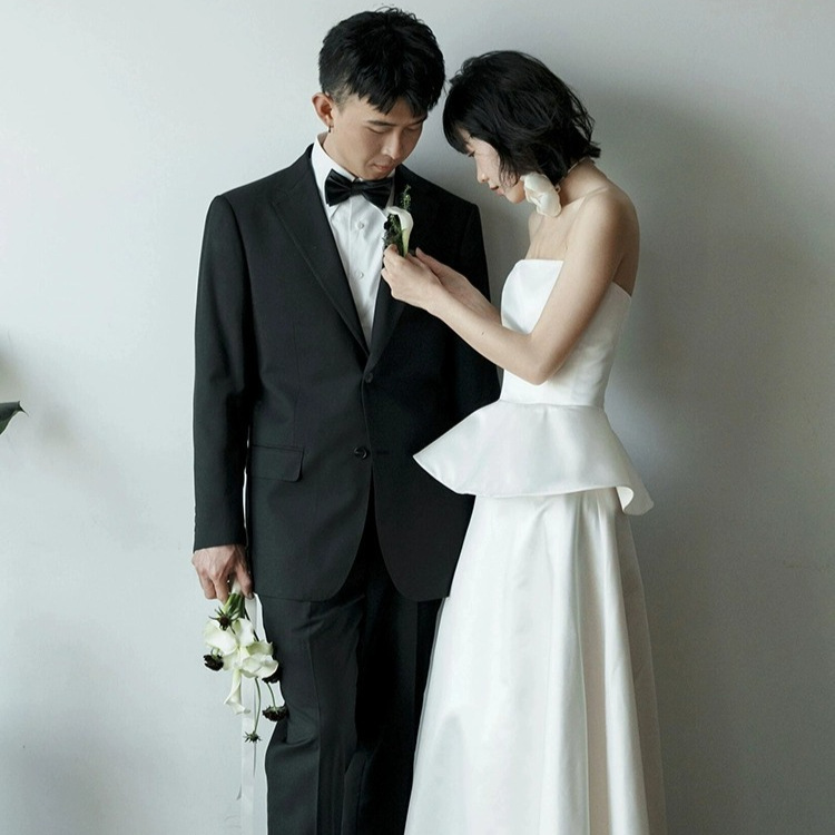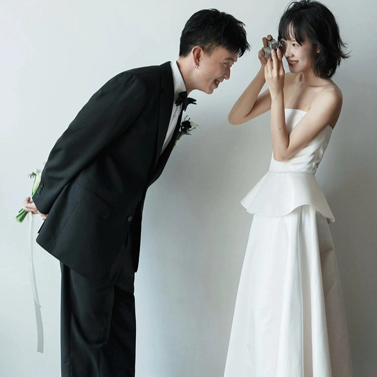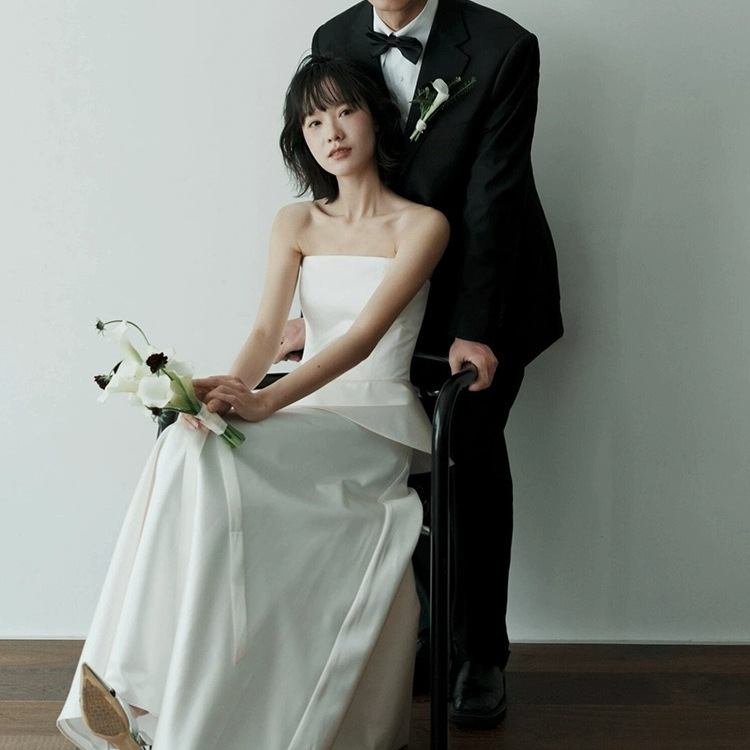 French-Style Strapless Light Wedding Dress for Women 2025 Autumn and Winter New Style Wedding Dress for Travel Photography, High-End Simple Satin White Dress