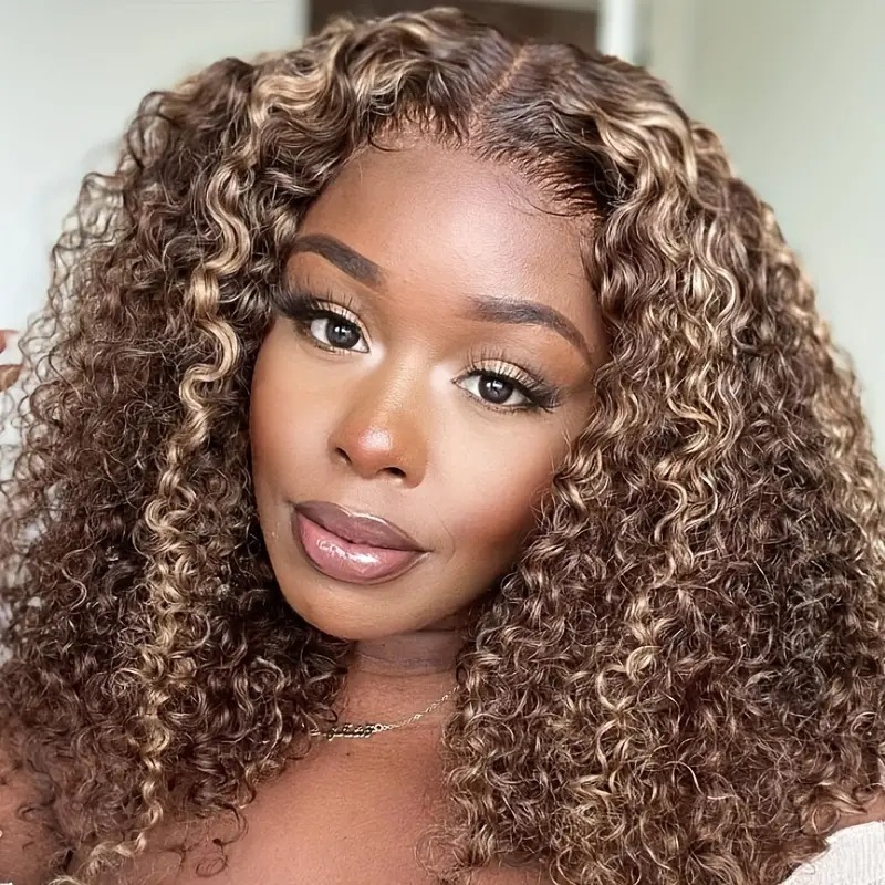 Front Lace Small Curly Wig Headgear, Export Cross-Border European and American Fashion Wig, Piano Color Small Curly Wig