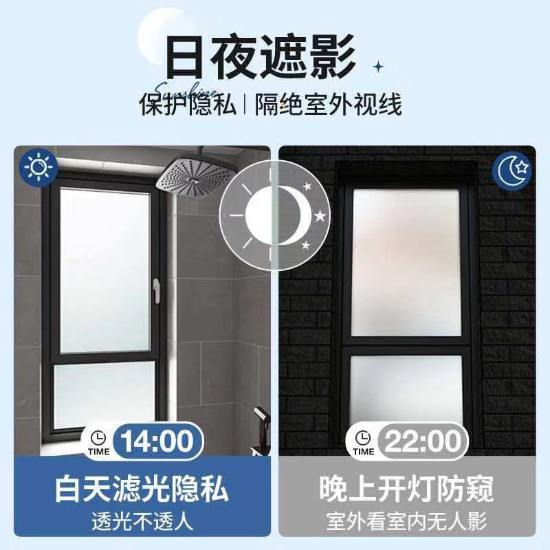 Frosted Glass Sticker Window Privacy Film Bathroom Shower Room Glue-Free Light-Transmitting Opaque Privacy Glass Film