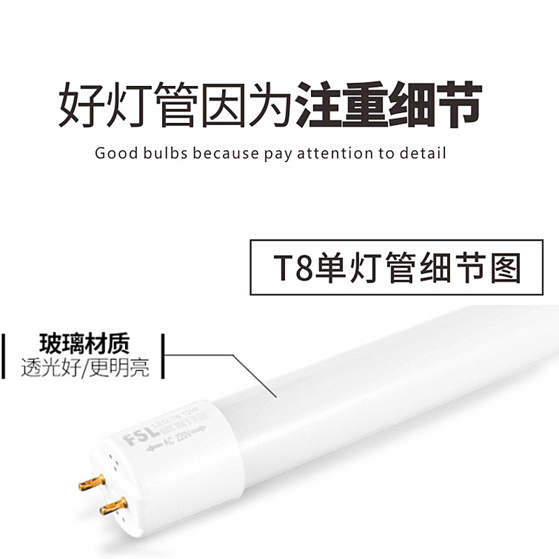 FSL Foshan lighting tube led integrated long household bracket lamp t8 fluorescent lamp 1.2 meter shaped lamp double-ended