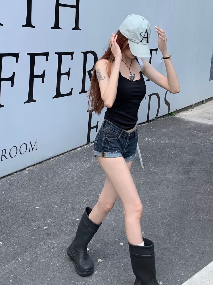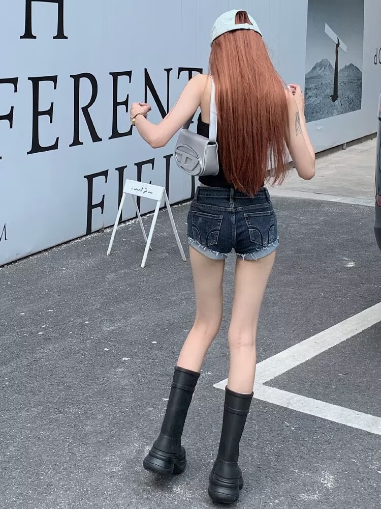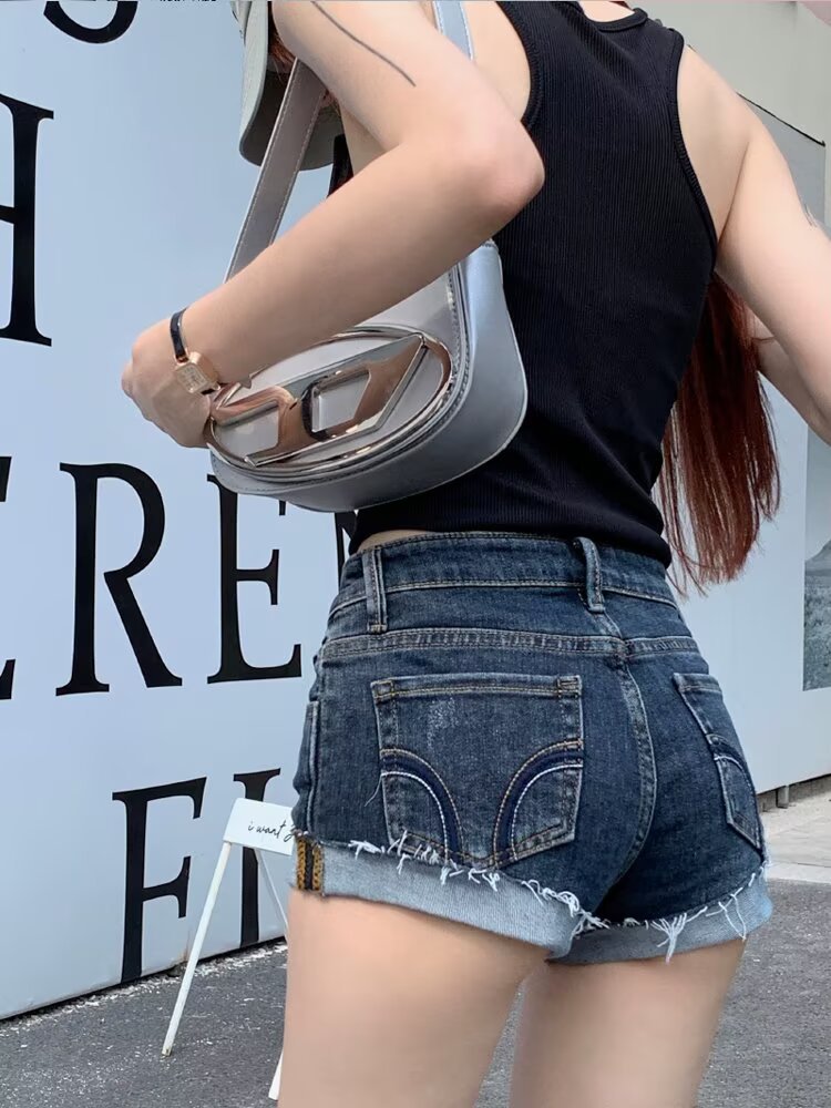 Fuiv Low-Waist Hip-Enhancing Denim Shorts for Women 2025 Spring New Raw Edge Flap Pocket Pants Sexy Sexy Hip-Covering Pants Trend