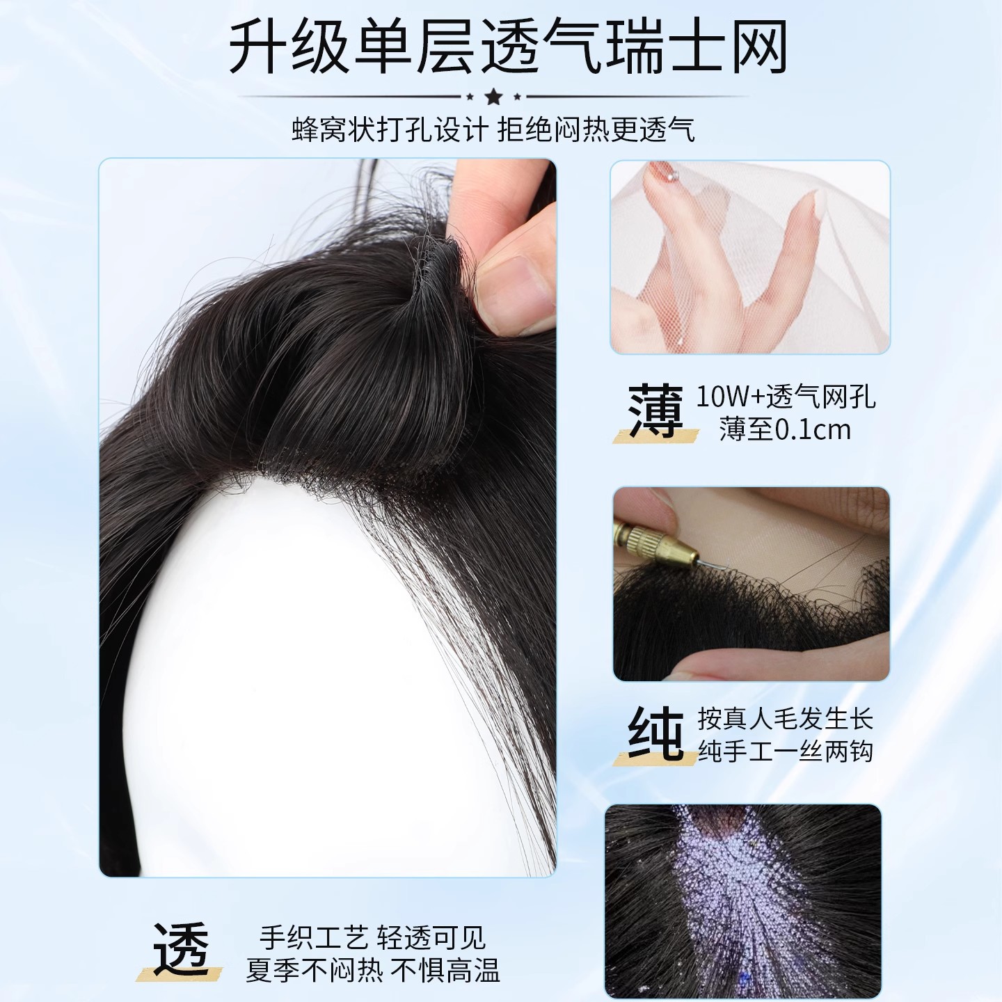 Full Wig for Women with Medium and Long Hair, Real Hair, High-Layered Short Hair, Clavicle Hair, Age-Reducing Natural Full Wig Set
