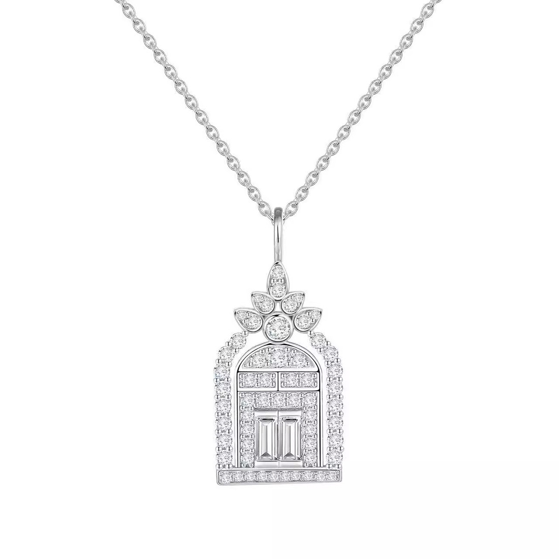 Gate of Happiness Full Diamond Castle Necklace Women's 2025 New Fashion Light Luxury Niche Design Clavicle Chain Jewelry Wholesale