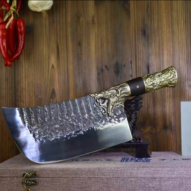 Longquan Hand-Forged Household Kitchen Knife, Bone Chopping Knife, Dual-Purpose Chef Cooking Stainless Steel, Sharp and Easy to Grind Stainless Steel