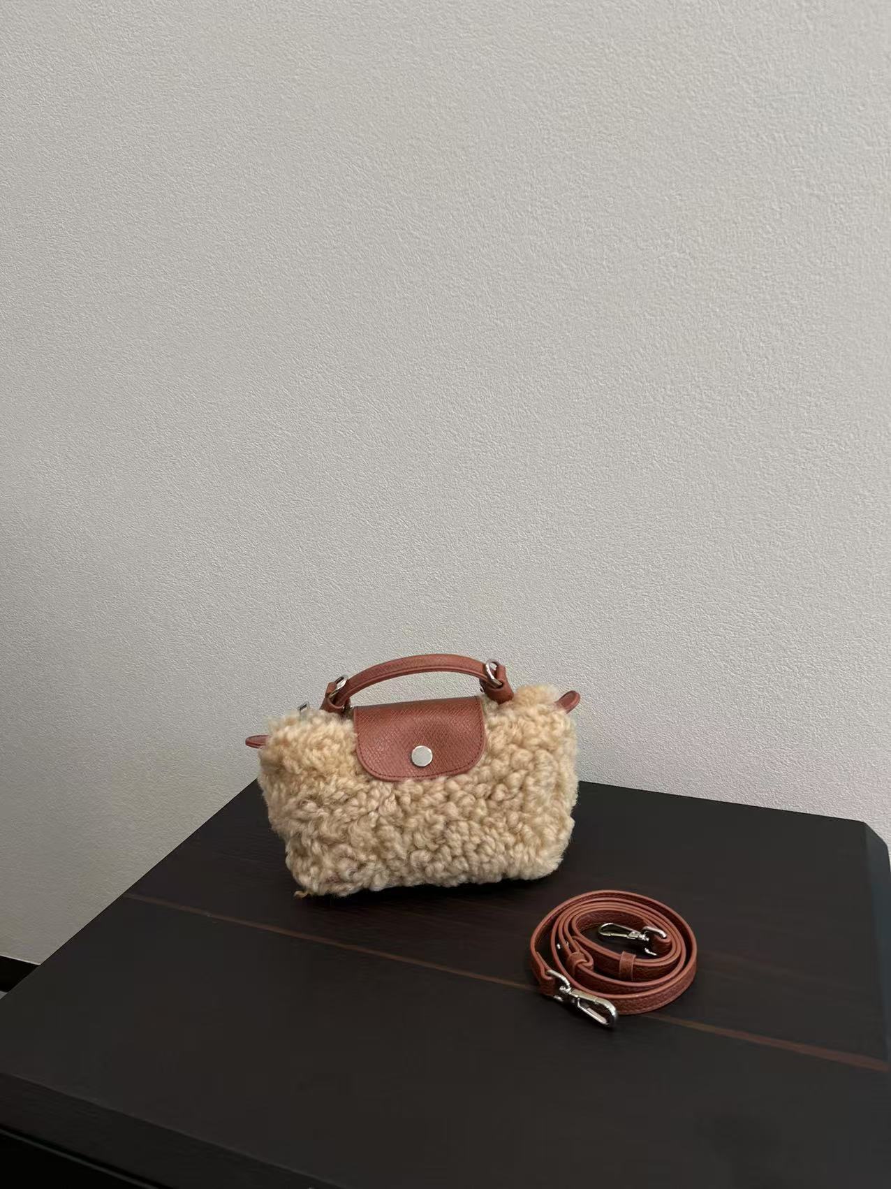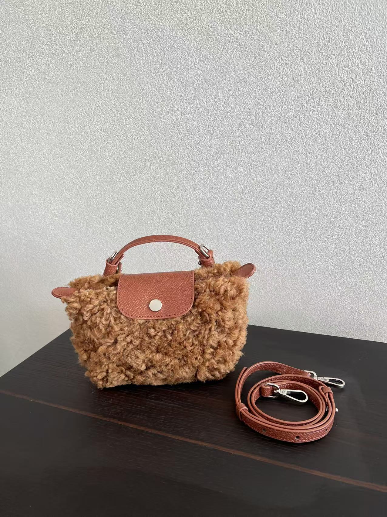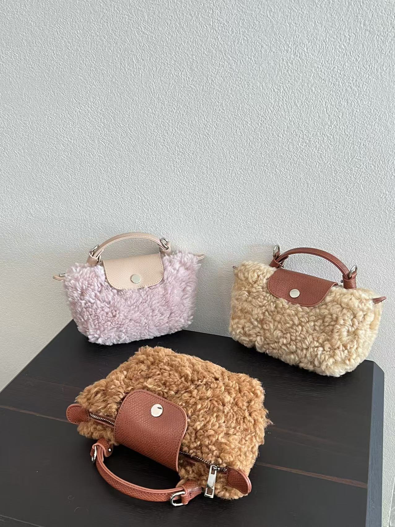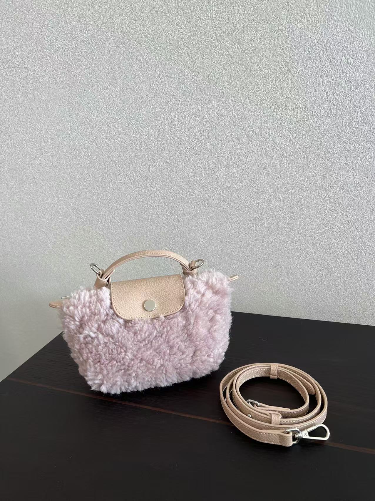 Genuine Leather Lamb Wool Bag Mini Satchel Fur Bag for Women 2025 Versatile One-Shoulder Diagonal Dumpling Bag Lock Bag