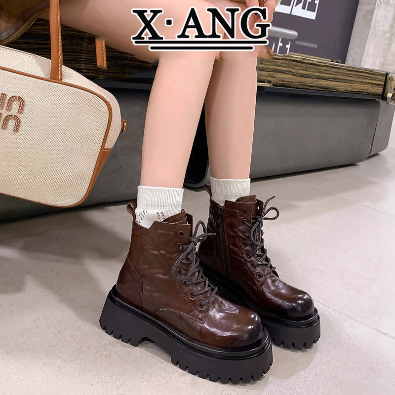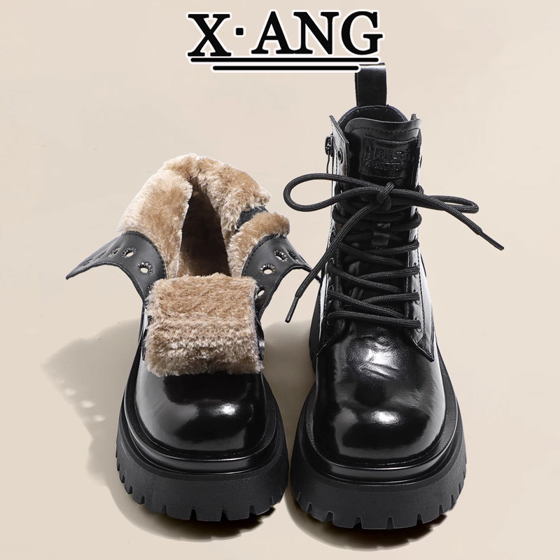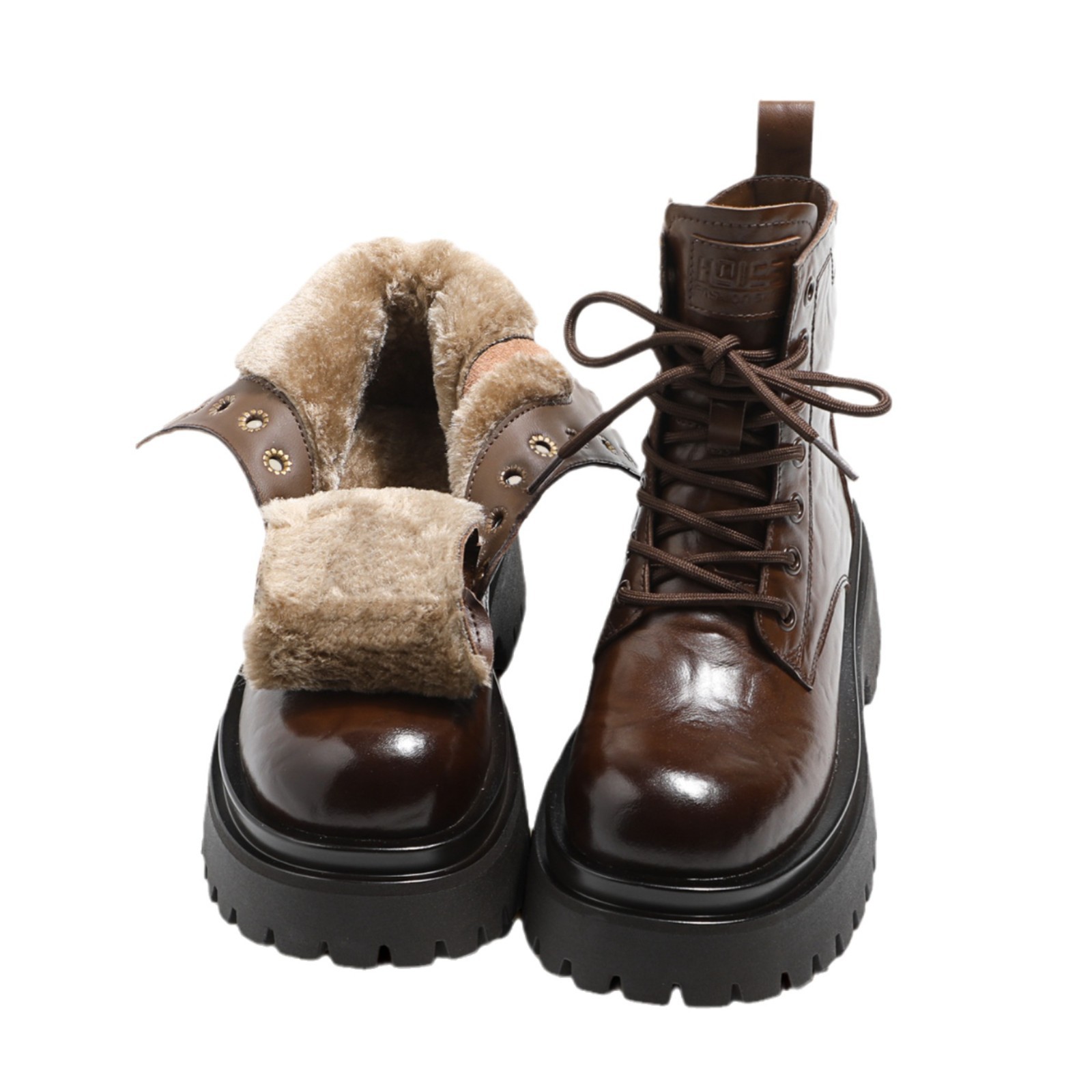 Genuine Leather Martin Boots for Women, Thick-Soled, Chunky-Heeled Short Boots, 2025 Winter New Style, Fleece-Lined, Thickened, Warm Snow Boots, Cotton Boots