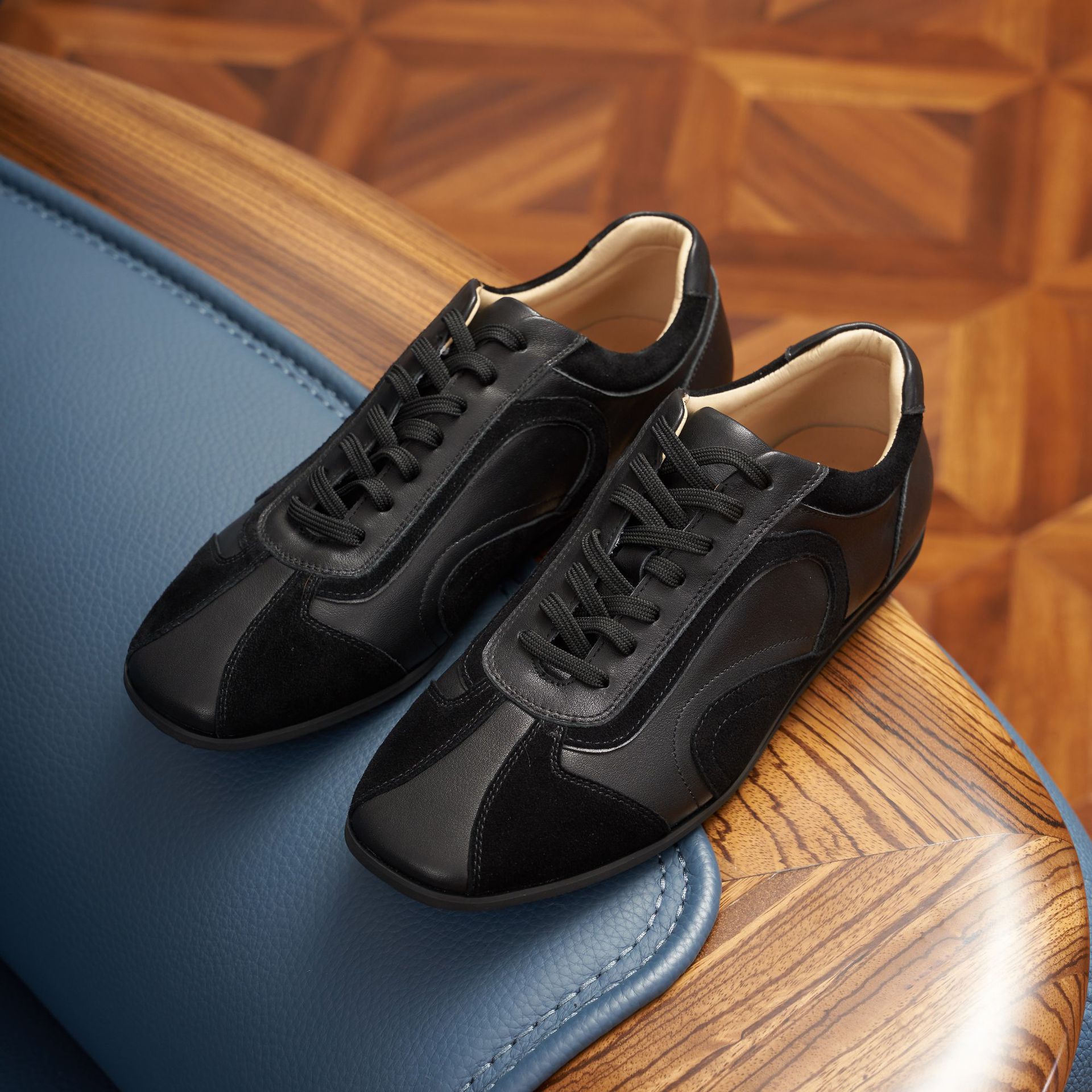 Genuine Leather Thin-Soled Men's Moral Training Shoes 2025 New Low-Top Casual Racing Shoes Retro Square-Toe Old Money Style Sports Shoes