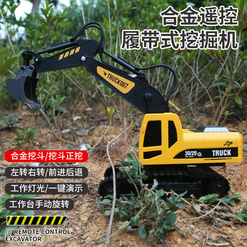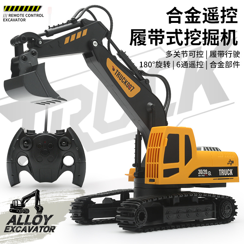 2025 New Cross-Border Excavator Remote Control Toy Engineering Vehicle Model Charging Alloy Toy Boy Excavator