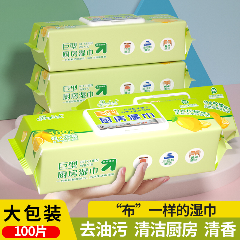 Giant 100 Kitchen Wipes Powerful Cleaning to Oil Stain Household Disposable Wipe Wipe Paper Thickened Big Bag
