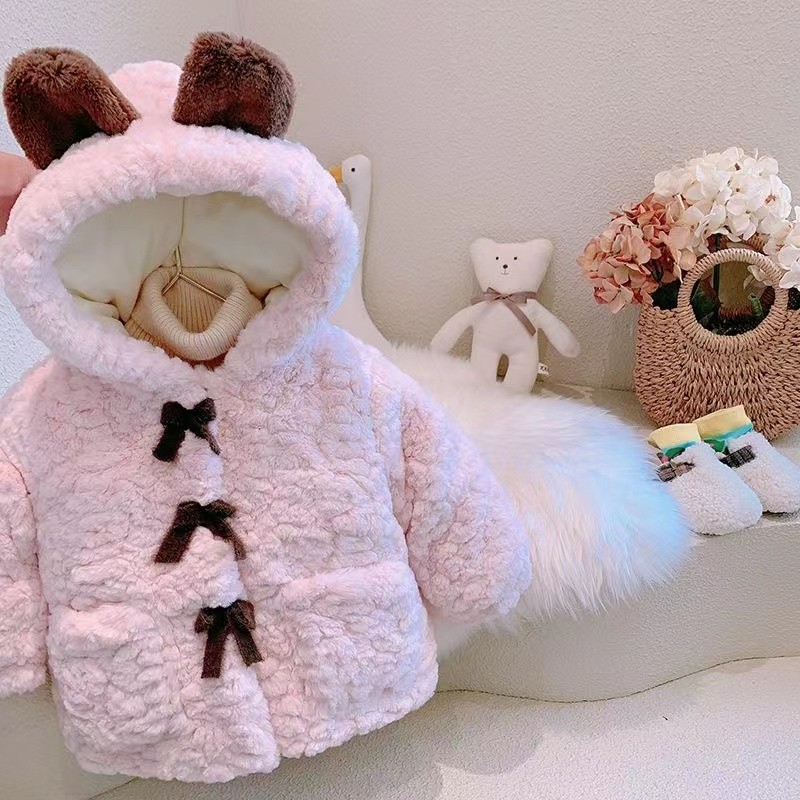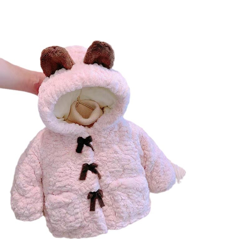 Girls' 2024 New Winter Clothing Baby Girl Thickened Coat Children's Western Style Woolen Sweater fleece-lined Hooded Cotton-padded Coat