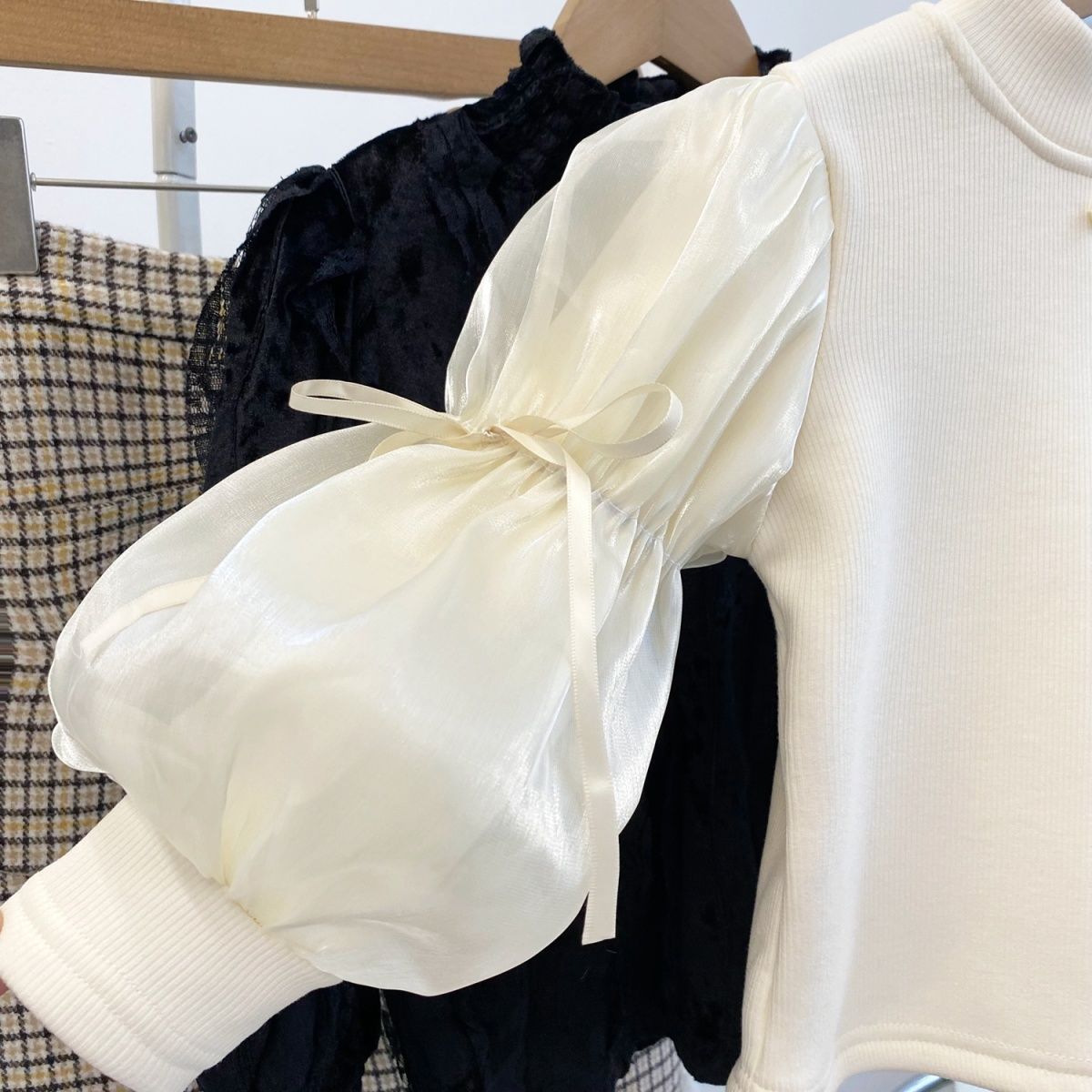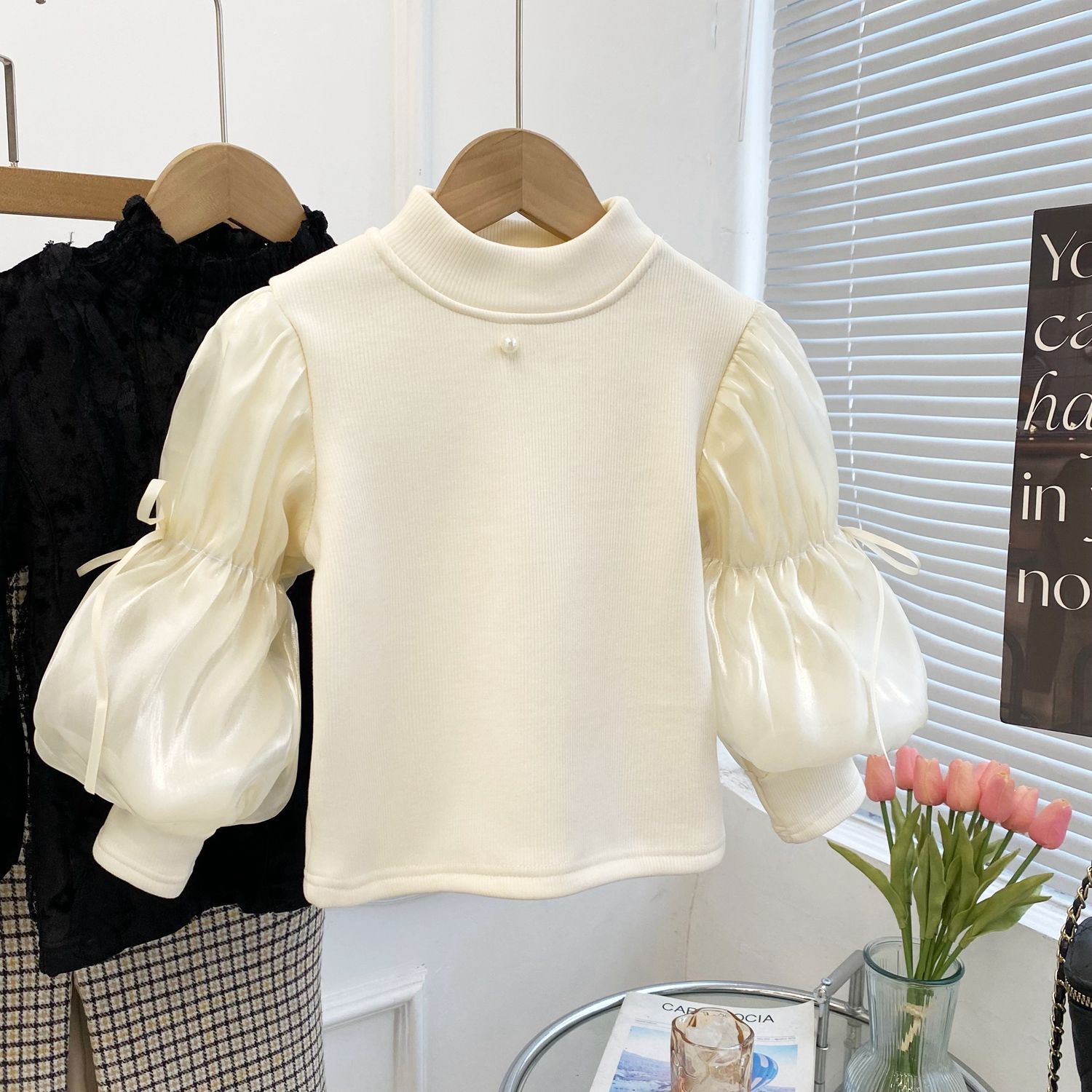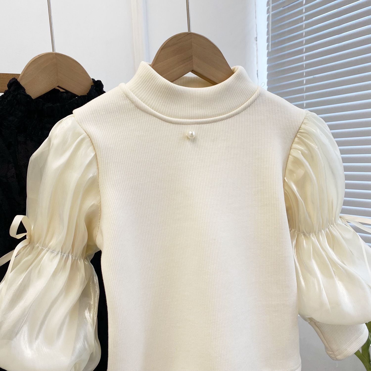 Girls' autumn and winter fleece-lined bottoming shirt half turtleneck children's inner lantern sleeve female baby fashionable princess top