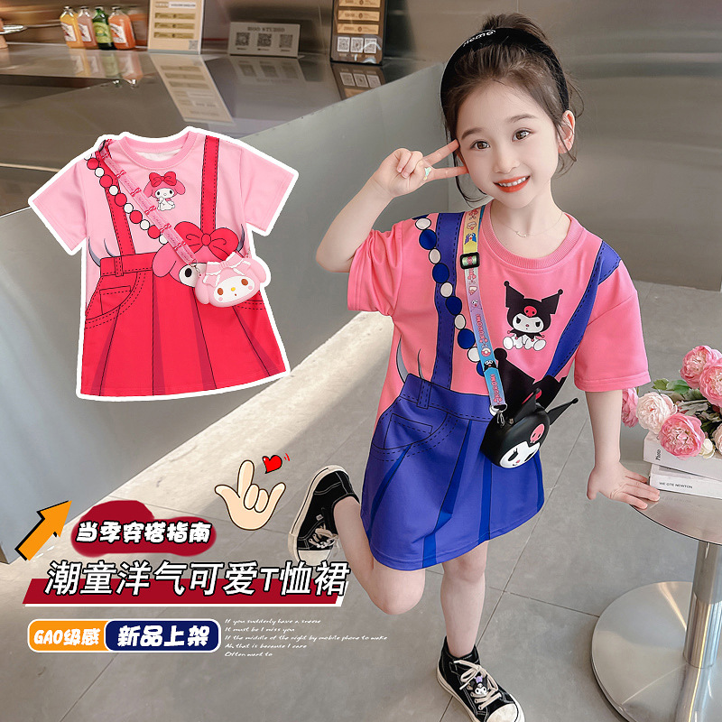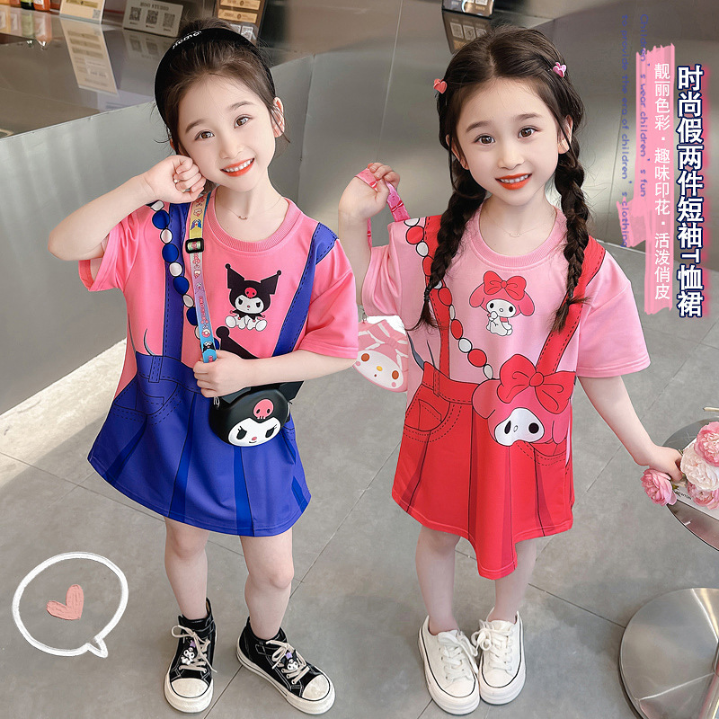 Girls Casual Cartoon Skirt Summer 2024 New Children's Summer T-shirt Skirt Baby Girl Fake Two-piece dress