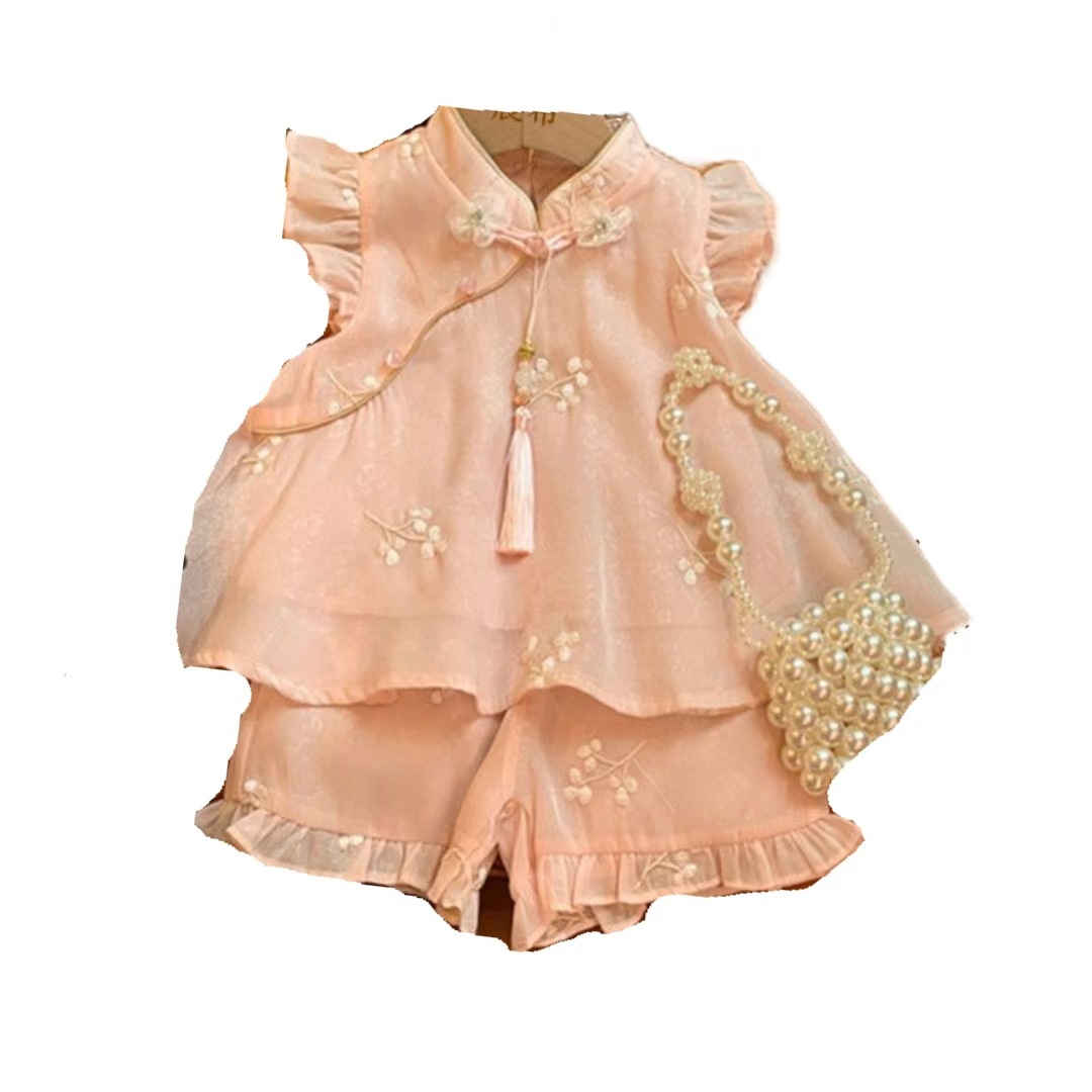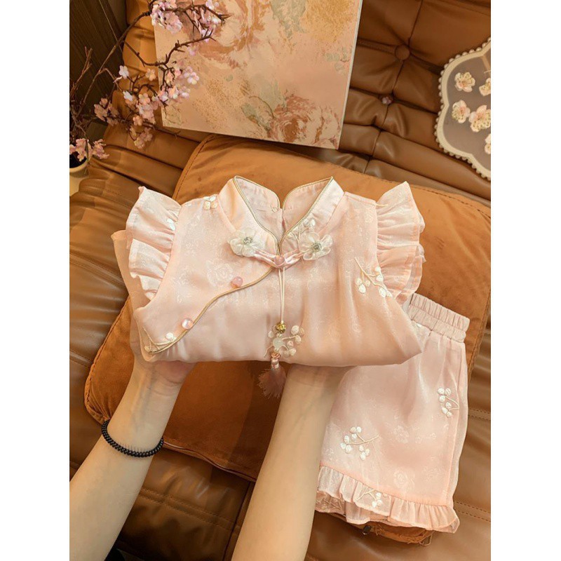 Girls Cheongsam suit Summer 2025 New Western Style Baby Girl National Style Sweet New Chinese Style National Style Two-piece Fashionable