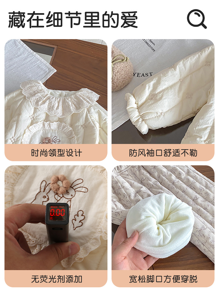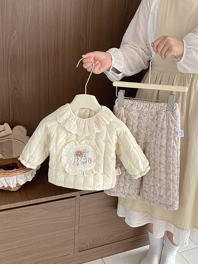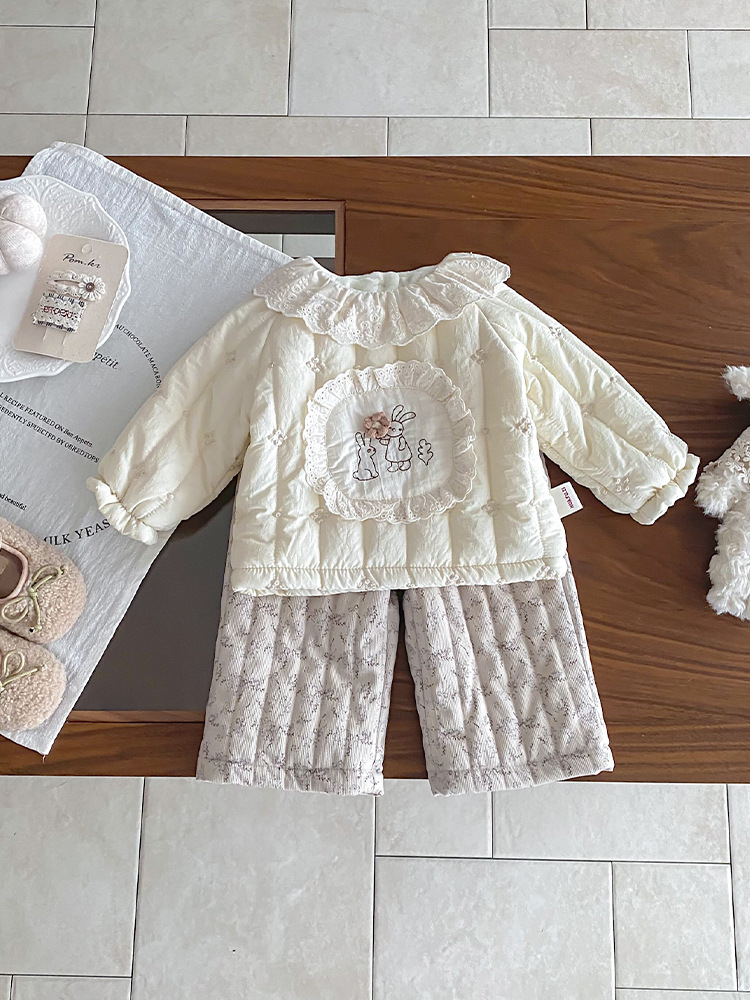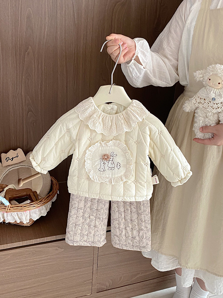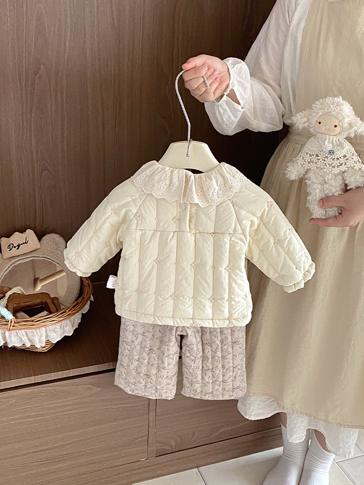 Girls' Cotton-Padded Clothes Set, Autumn and Winter Clothes, Light and Thin, Baby Girl, Little Princess, Thickeneded and Warm Outing Clothes, Girls' Two-Piece Set