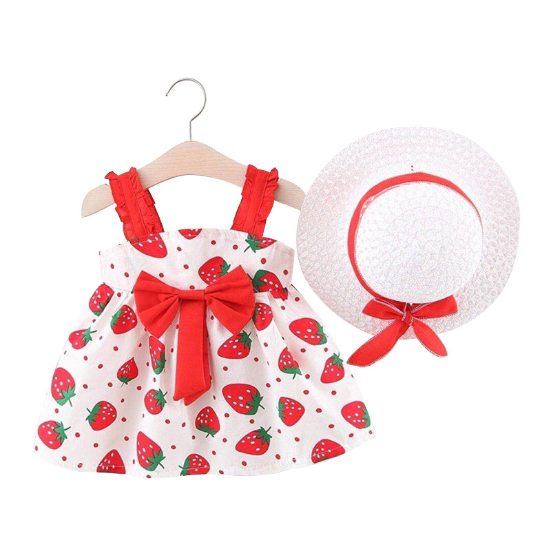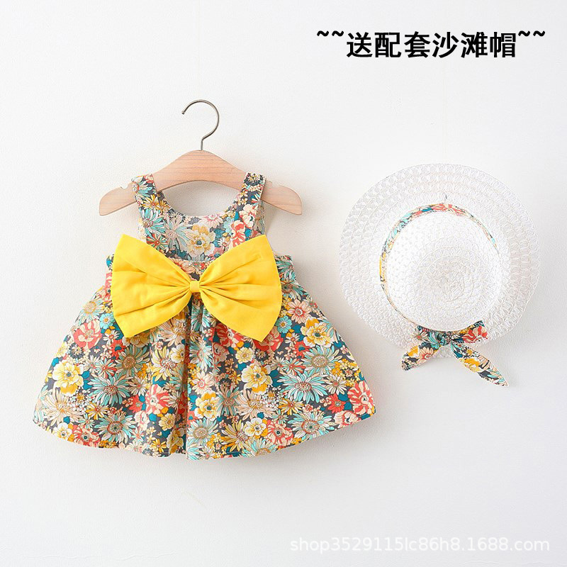 Girls' dress 2025 Summer New Korean Style Floral Summer Dress Baby Styline Cotton Dress for Hat