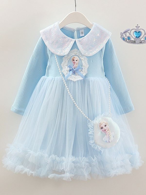 Girls Elsa Princess Dress 2024 Spring New Girl Spring Dress Western Style Baby Girl dress Children's Fairy Dress