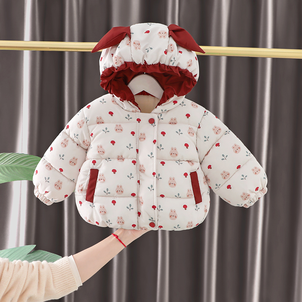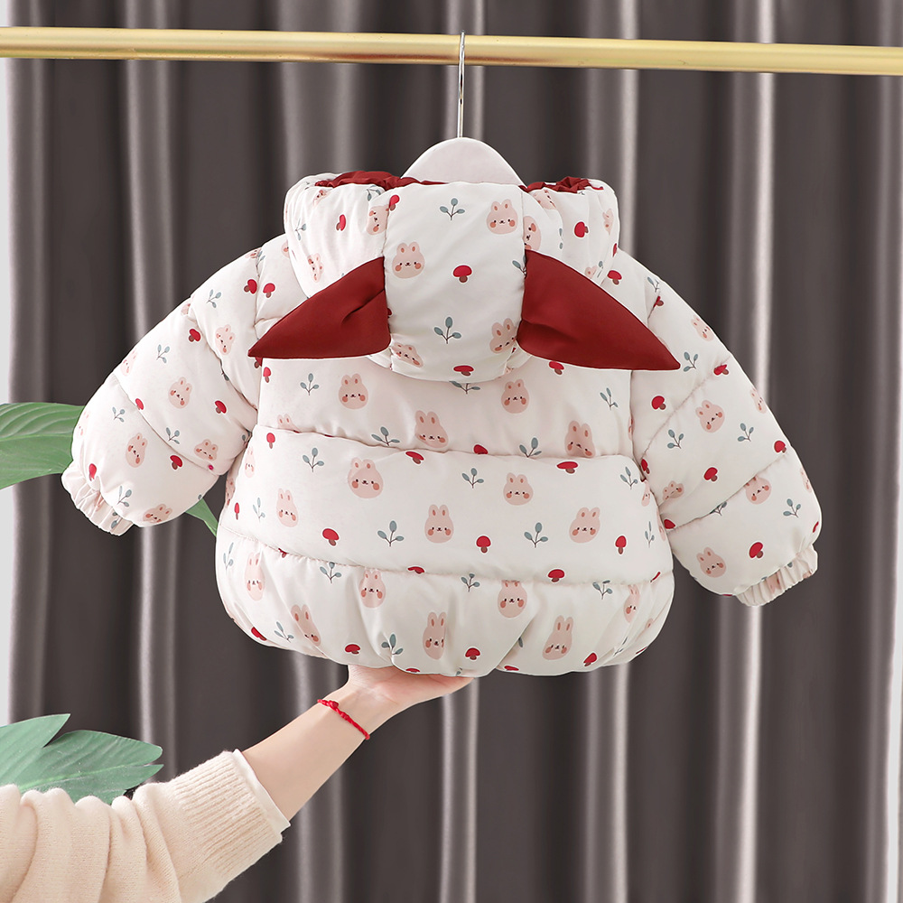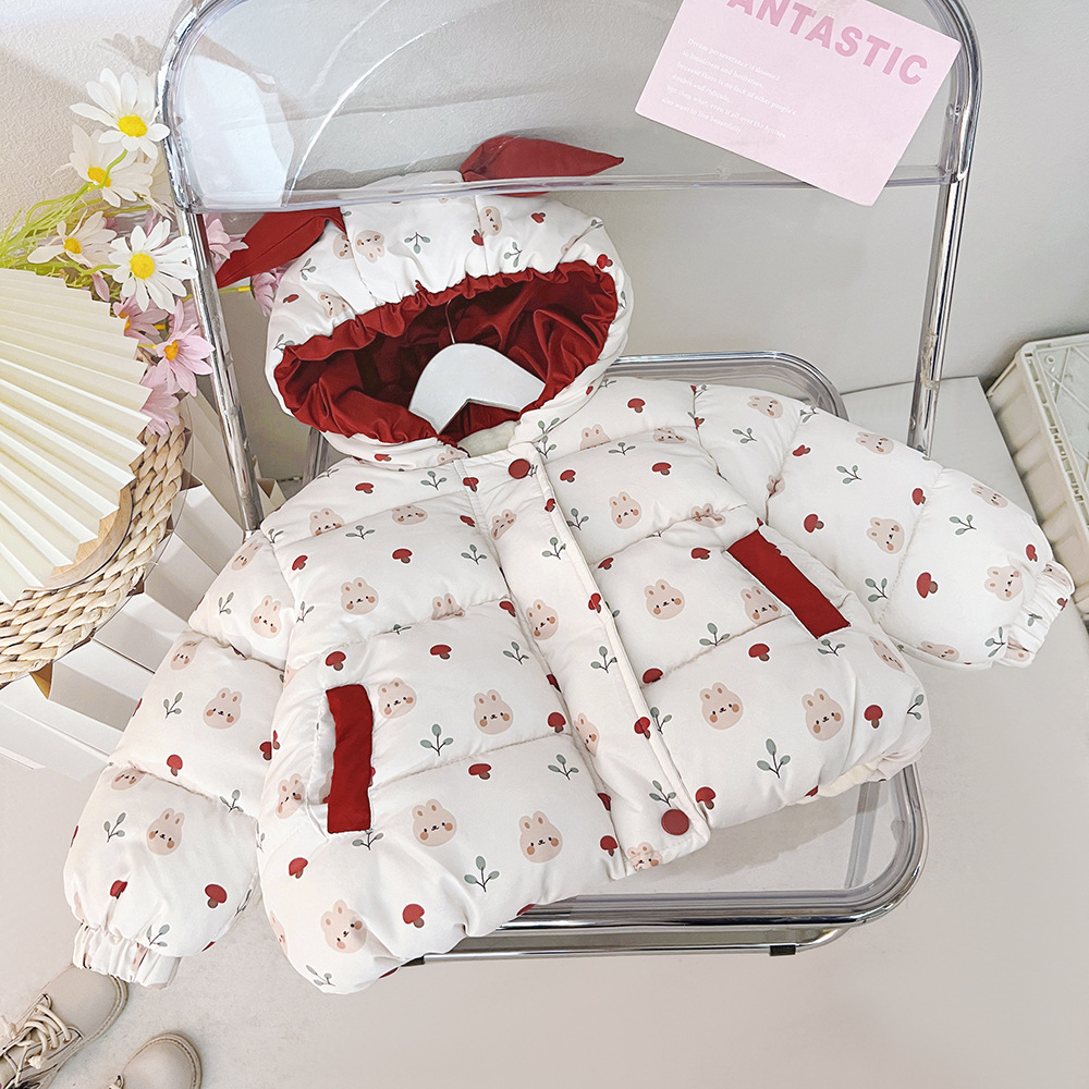 Girls' fleece-lined Mushroom Rabbit Winter Clothing Cotton-padded jacket 2024 New Western Style Baby Girl Hat Thickened Warm Cotton Coat