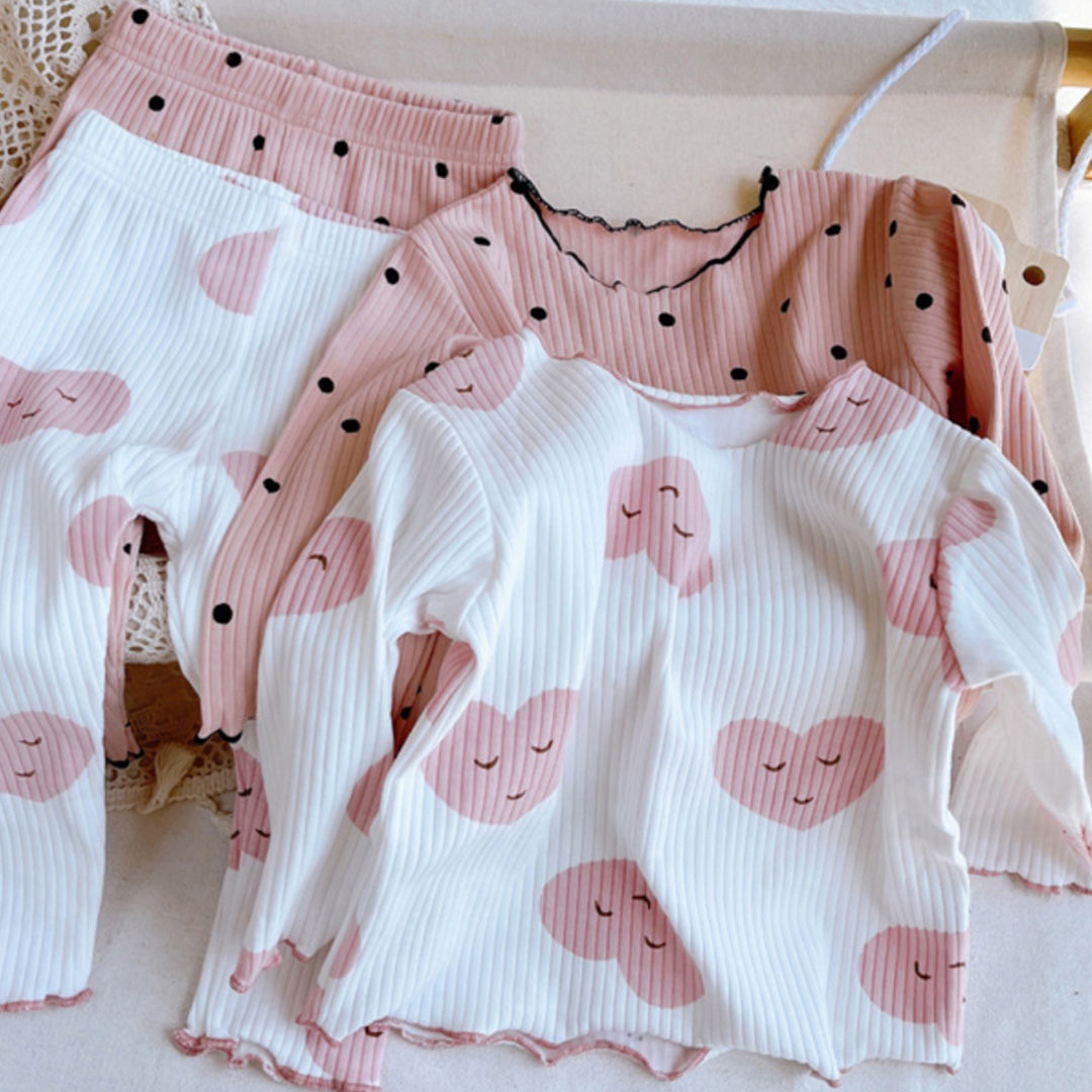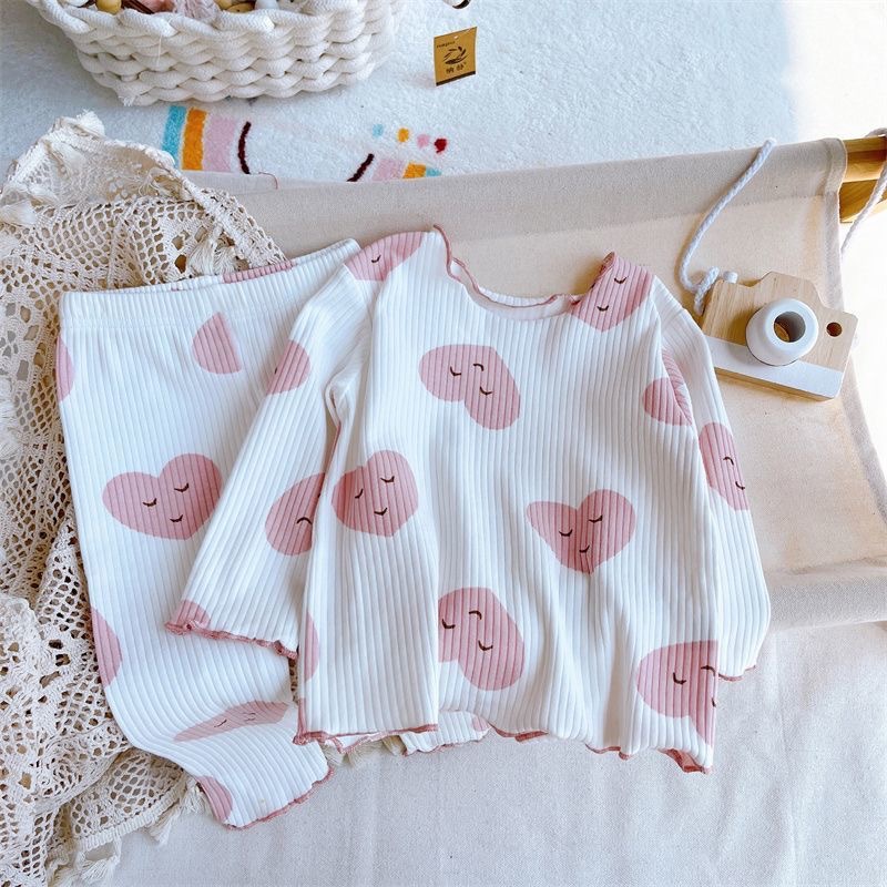 Girls Home Clothes Two-Piece Set Cute Baby Girl Threaded Ice Silk Long-Sleeved Pants Suit Kidsren's Style Pajamas