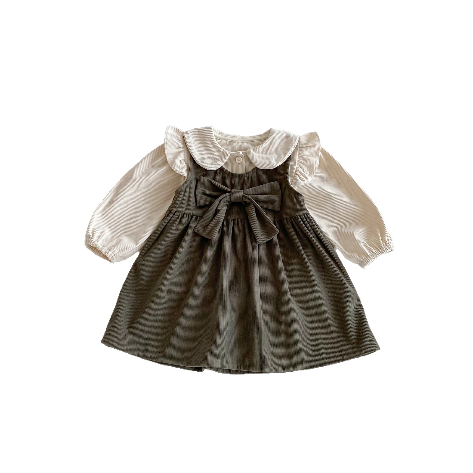 Girls Korean Autumn Dress Doll Collar Cardigan Long Sleeve Top Baby Girl Spring and Autumn Corduroy Vest Dress
