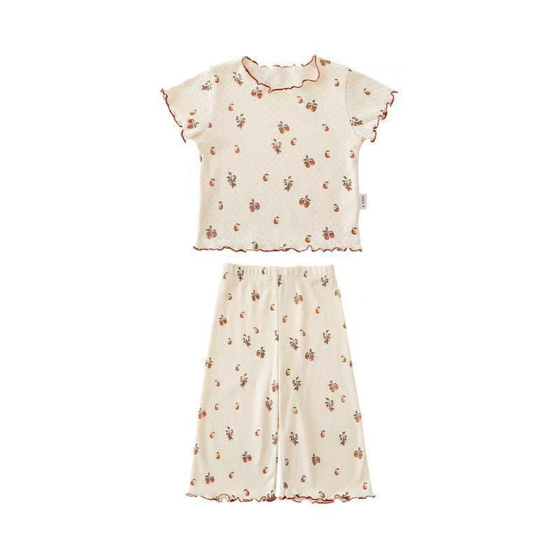 Girl's Pajamas 2025 New Summer Floral Princess Style Little Girl's Home Clothes suit Thin Baby Girl's Summer Clothes